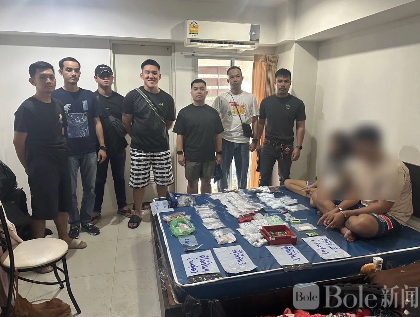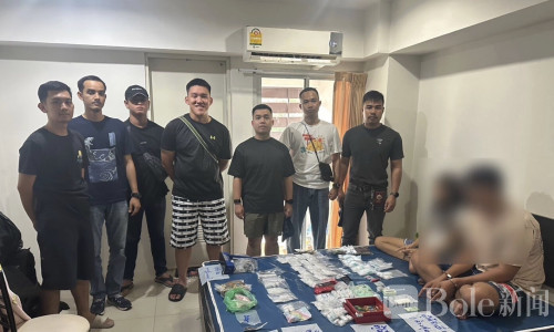 Bole新闻专讯: 曼谷警方近日展开扫毒行动,在普拉普拉乍夜警区成功抓获一对涉嫌贩毒的夫妇,并在其公寓内缴获大量毒品。警方查获的涉案物品包括2.245公斤K他命、139颗电子烟烟弹型“pocky”、7包“快乐水”胶囊、109颗摇头丸及220颗Erimin 5,涉案总价值超过67万泰铢。