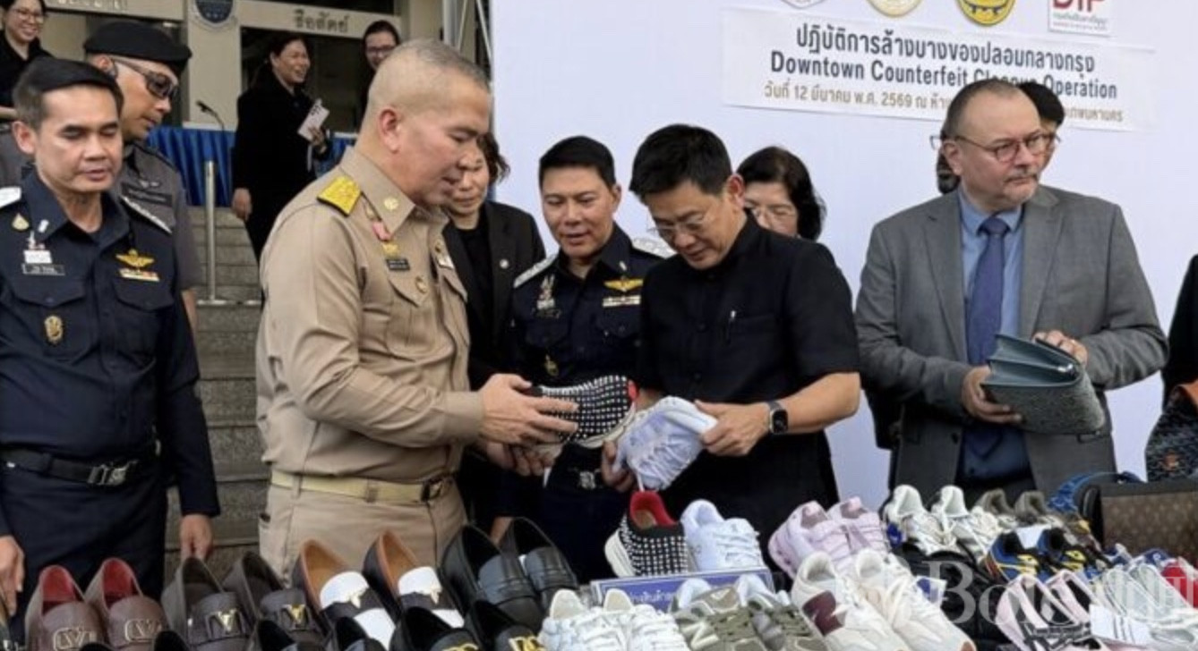 Bole新闻专讯:泰国知识产权调查局(DSI)与知识产权部联合行动,于曼谷一家知名商场展开大规模突击搜查,锁定17个重点点位,查获假冒名牌商品近48,000件,总体涉案损失超过5亿铢。据警方披露,这些假货主要涉及路易威登(LOUIS VUITTON)、迪奥(DIOR)、戈雅(GOYARD)、耐克(NIKE)、阿迪达斯(ADIDAS)等知名品牌。犯罪集团夜间偷偷将商品运入商场,并通过精心布置的物流网络进行分发和储存,以规避监管。