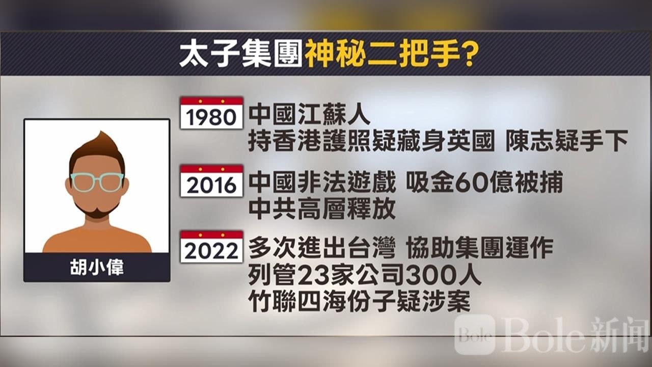 与此同时,两人还在中国内地及中国台湾地区持续扩展网络。根据太子集团前高层、新加坡人张刚耀的爆料,胡小伟被指就是美国通缉名单中的“陈小二”。在集团内部,他虽被称为“二把手”,但实际控制力远超表面。