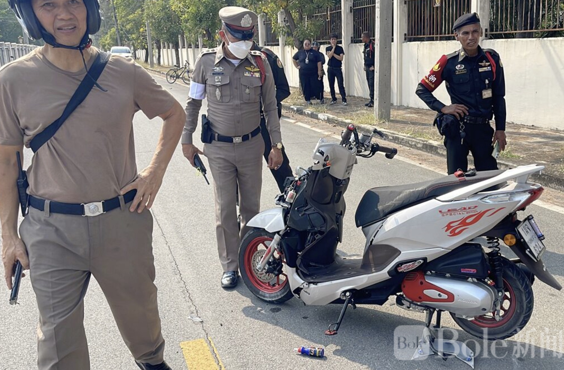 Bole新闻专讯:一场看似再平常不过的“下班吃饭再回岗”,却在转瞬之间变成无法挽回的悲剧。3月25日下午,泰国巴吞他尼府发生一起致命交通事故,一名保安骑摩托车返回工作岗位途中,突然失控撞上路边围栏,当场身亡。