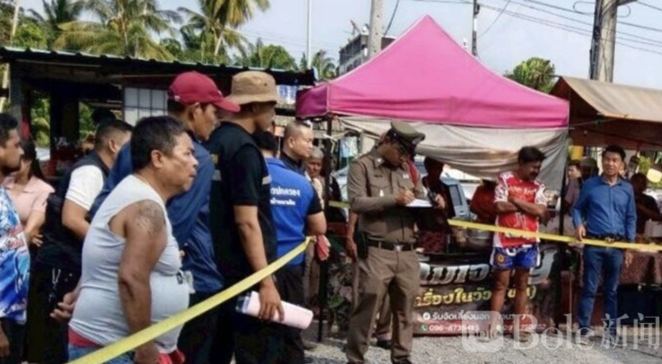 Bole新闻专讯:4月3日下午,泰国素叻他尼府班纳登镇一处热闹的市场内发生惨剧,一对年长夫妻因争执引发枪击事件,导致丈夫与妻子双双死亡。
