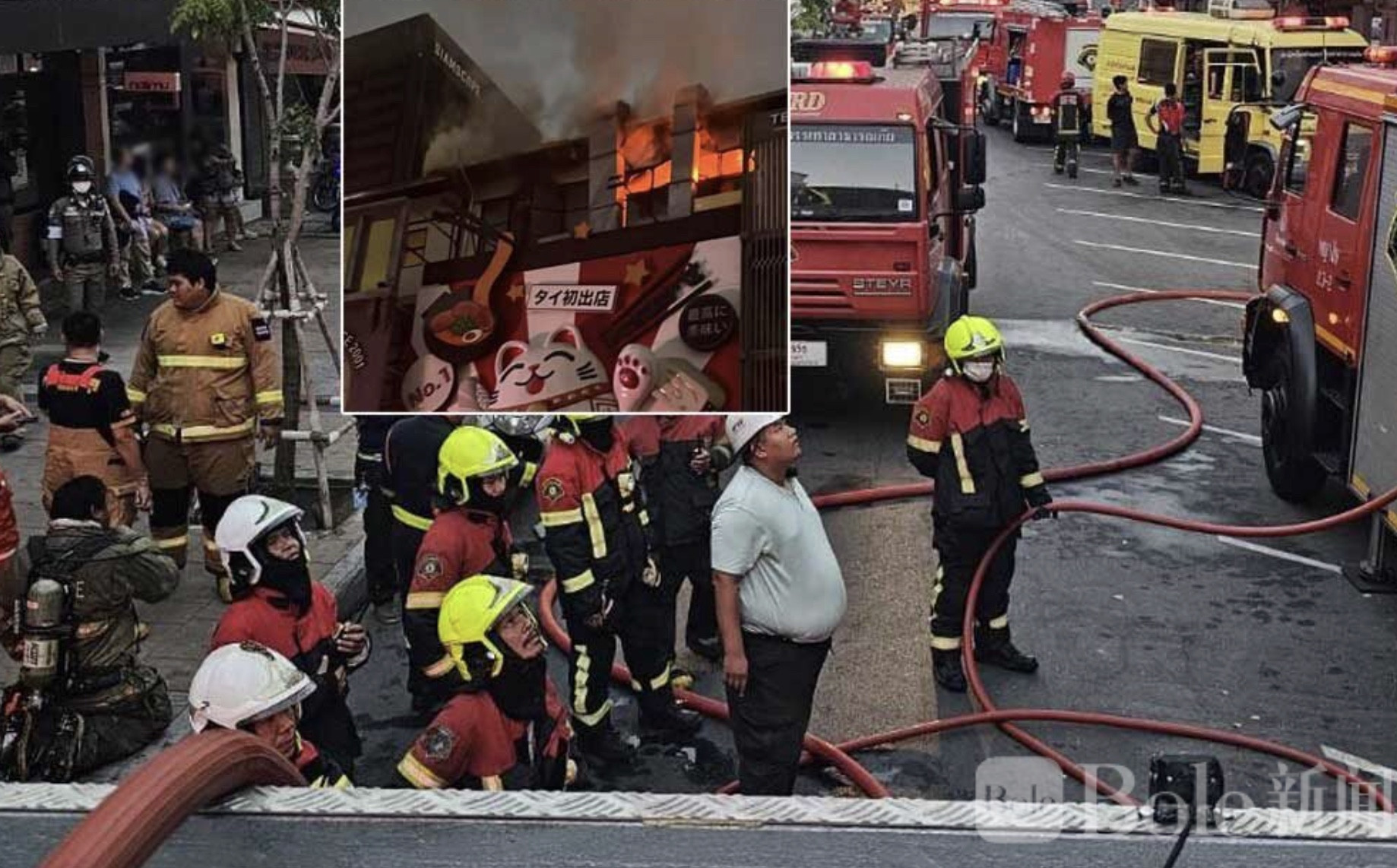 Bole新闻专讯:8日上午5时40分,曼谷市消防局接到热线199报警,位于帕拉玛一街区、暹罗广场3巷附近的一栋五层高建筑发生火灾,建筑内经营日式餐厅。多支消防队伍包括巴拉特通、邦拉克、素安玛丽、博恩盖、帕亚泰及普考通分队紧急出动,迅速赶往现场扑救。