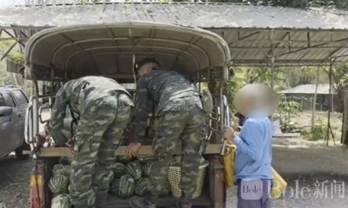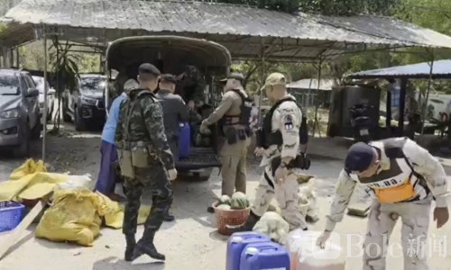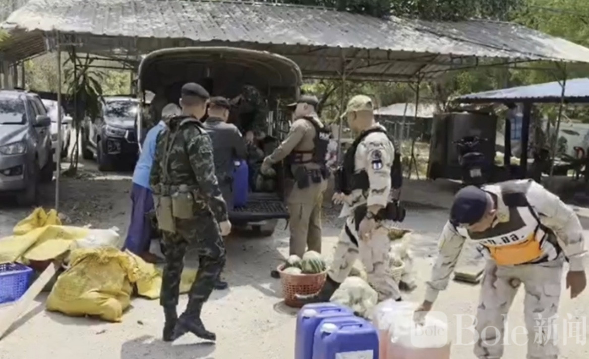 Bole新闻专讯:2026年4月13日泰国消息,边境走私再现新手法。一名56岁男子在北碧府桑卡拉武里县检查站被当场抓获,其驾驶的皮卡车表面装满西瓜,实则在水果下方暗藏大量汽油,共计395升,企图偷运出境牟利。
