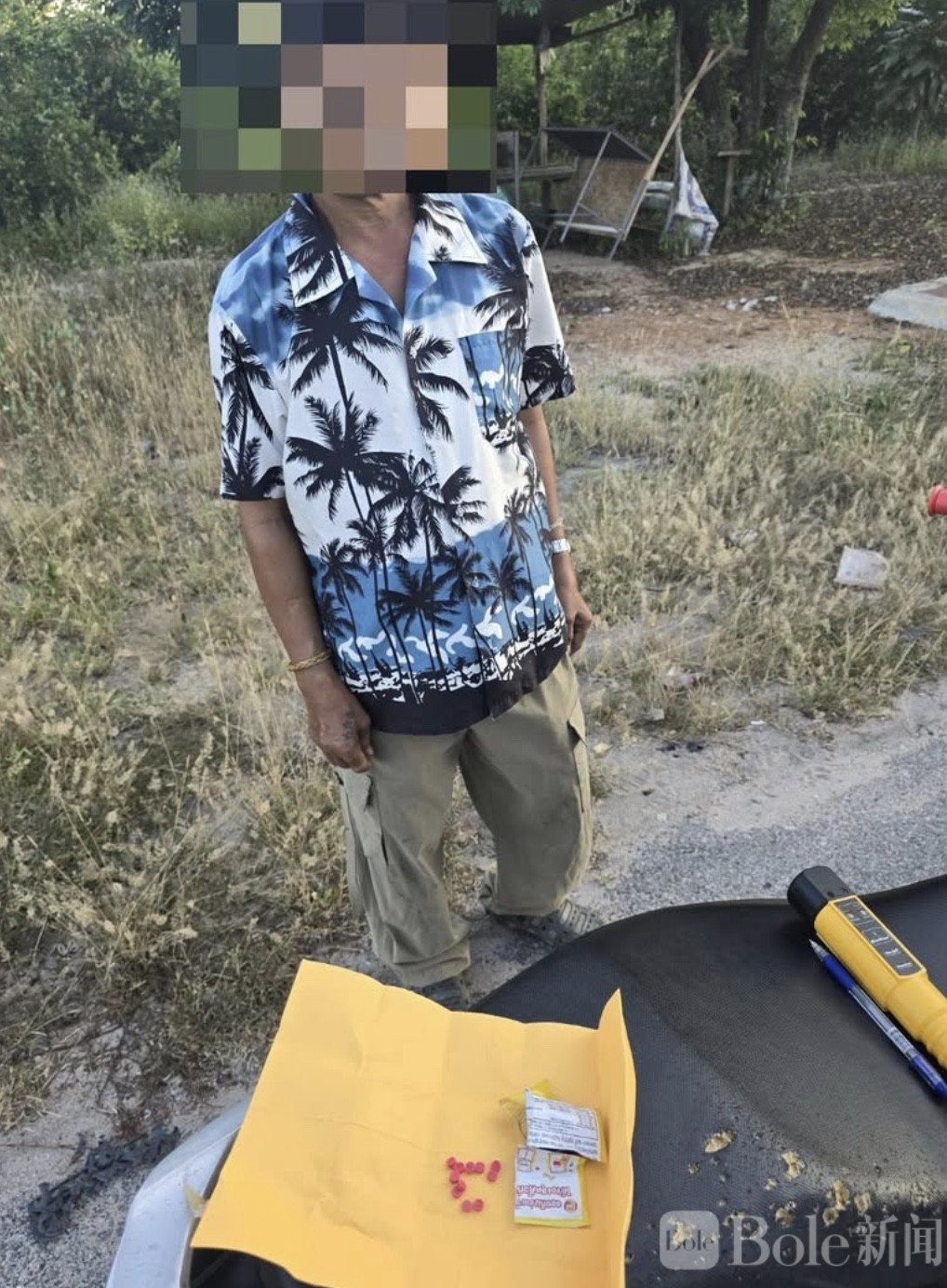 Bole新闻专讯:泰国罗勇府班昌地区警方近日加强巡逻执法,在当地一处岗亭前成功抓获一名毒品嫌疑人,并当场查获冰毒104粒,随后依法将嫌疑人与相关证物移交调查部门处理。