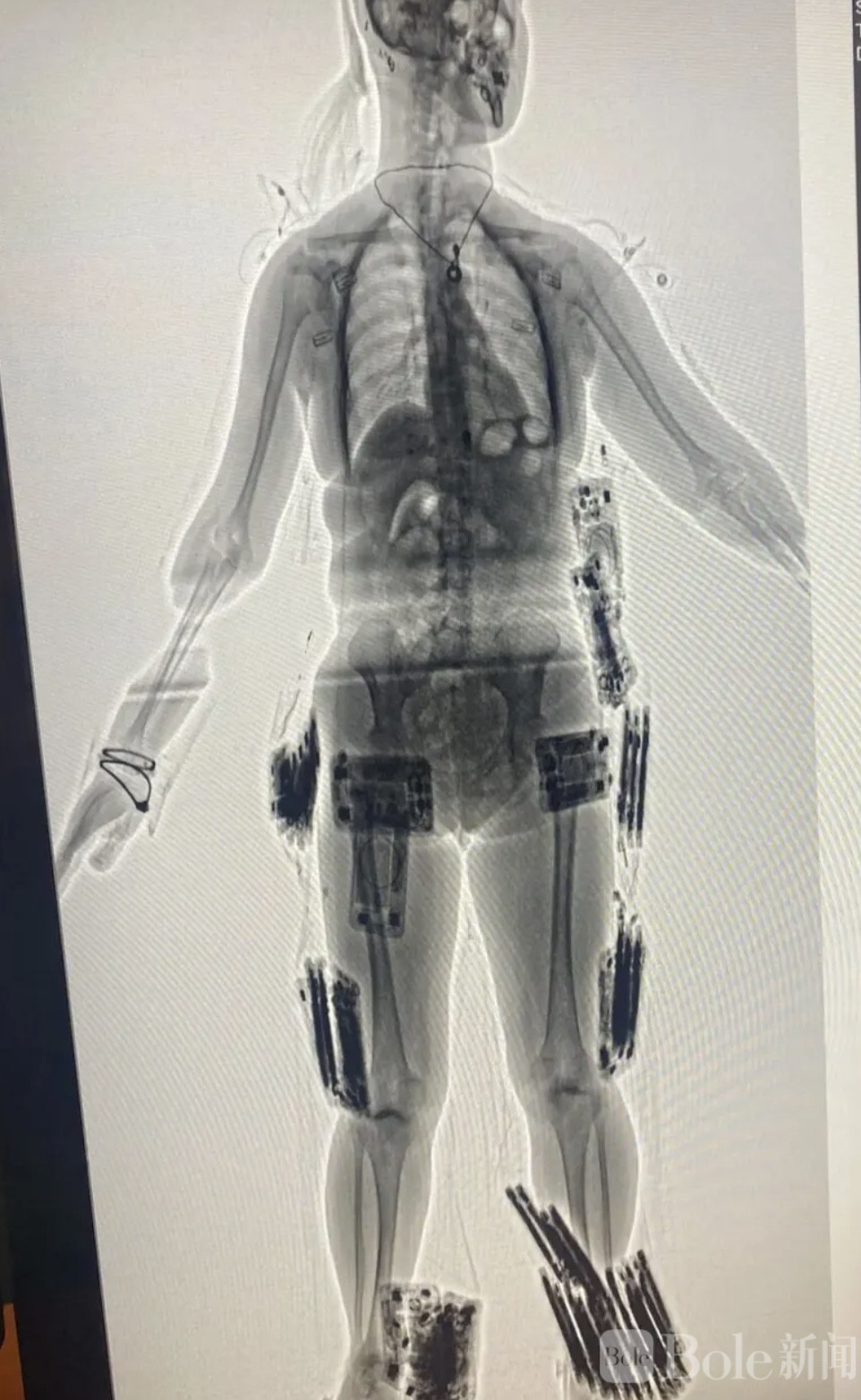 起初一切看起来似乎并无异常,但在海关人员进一步检查时,情况逐渐显露端倪。执法人员发现,这些旅客的衣物、行李甚至身体部位上,都被胶带层层缠绕着各种电子设备。