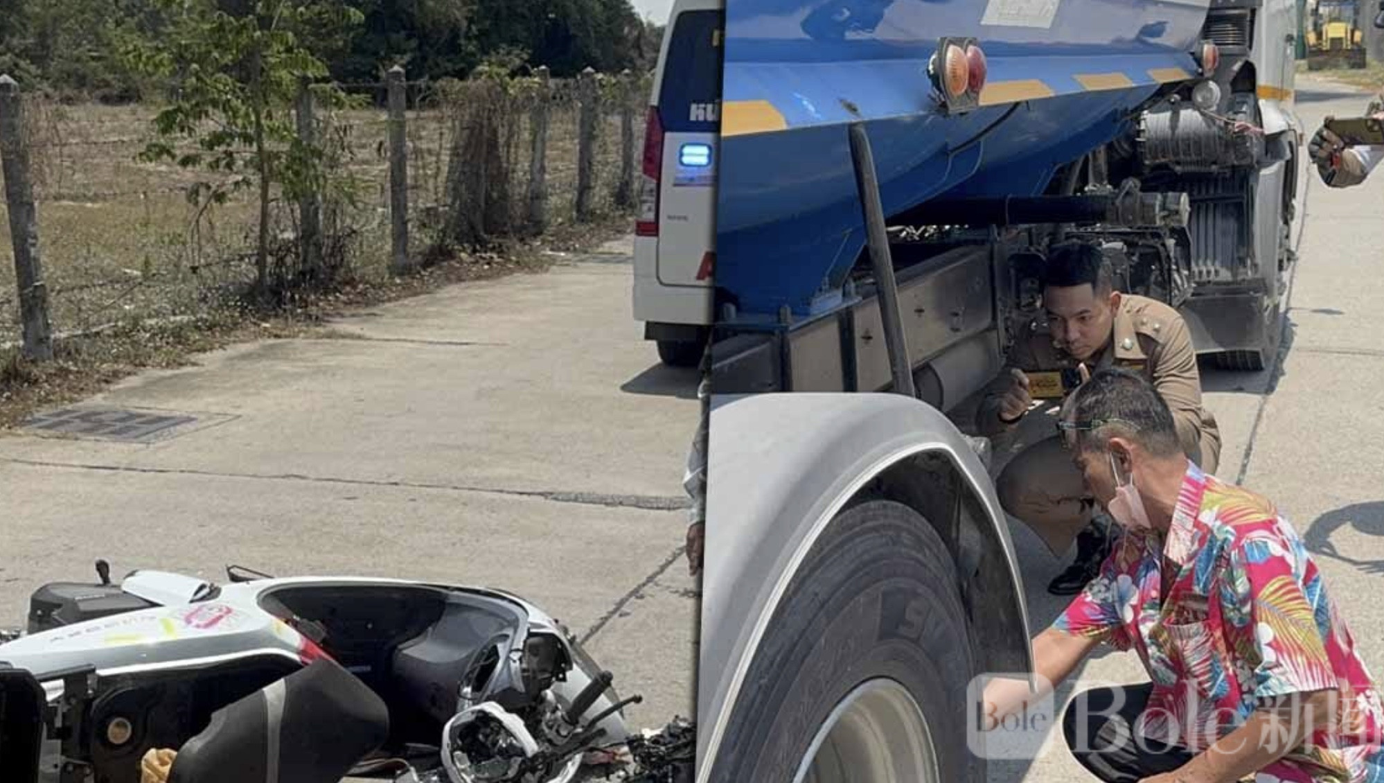 Bole新闻专讯:泰国春武里府芭堤雅地区近日发生一起令人痛心的交通事故,一名48岁中国籍男子骑乘摩托车途中疑似低头查看手机,车辆突然失控摔倒,整个人卷入一辆6轮货车底部,最终被车轮碾压当场身亡。