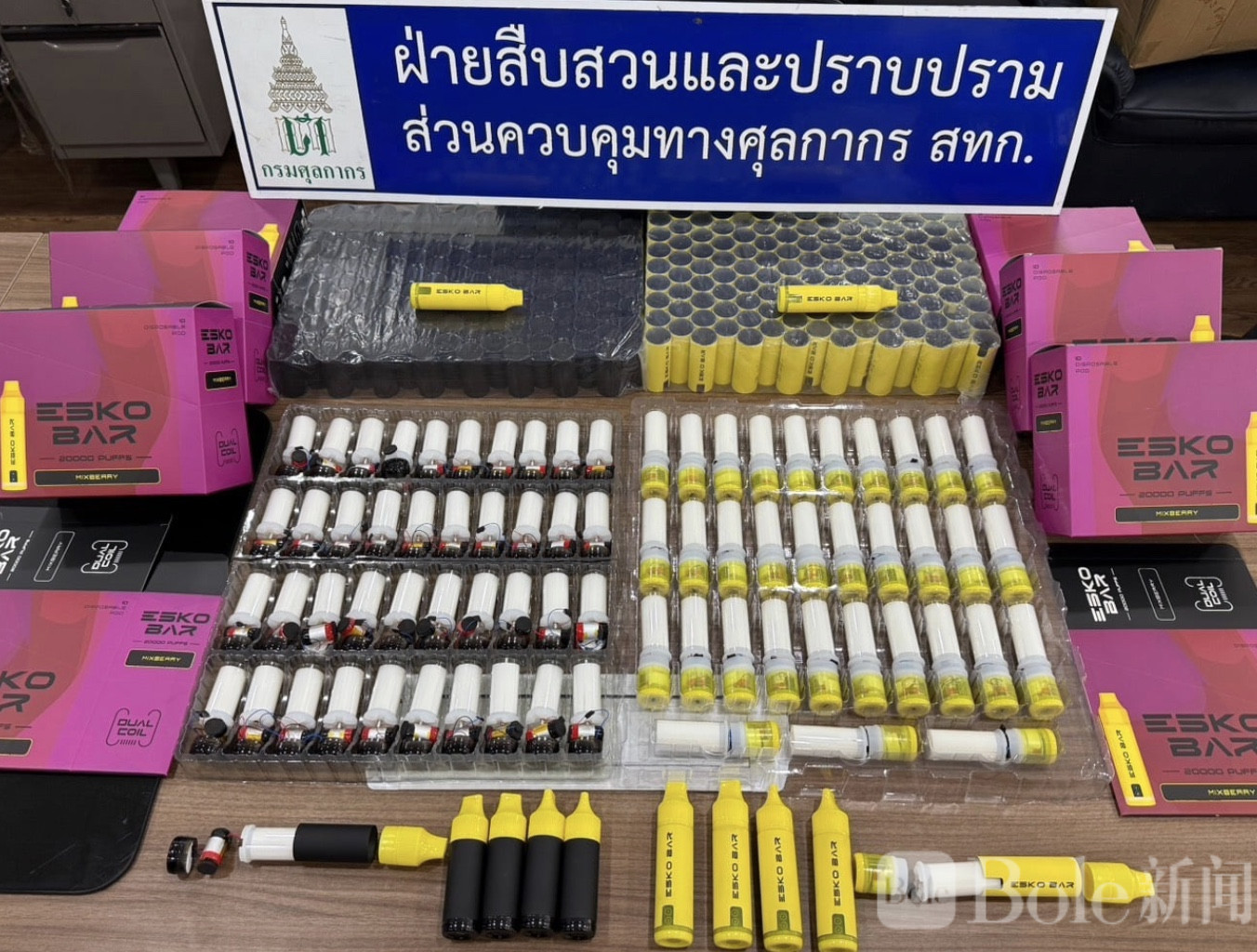 Bole新闻专讯:2026年4月28日,泰国曼谷港口海关展开专项执法行动,成功查获一批非法走私入境的电子烟、烟油及“笑气”(一氧化二氮),涉案总价值超过27百万泰铢,成为近期打击非法商品行动中的重大案件之一。
