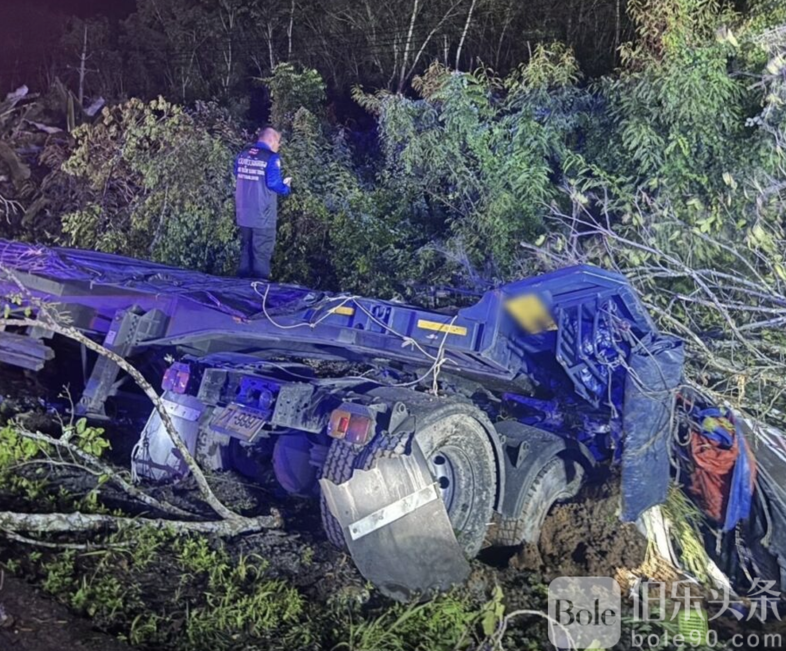 伯乐头条专讯:泰国南部博他仑府发生一起惨烈车祸,一名拖车司机被满载天花板的货物压死。这起事故发生在4月18日晚上10点30分左右,地点位于巴本县通纳里镇班帕巴克15号公路沿线。59岁的司机马诺普被发现当场死亡,被埋在他所运送的货物下。