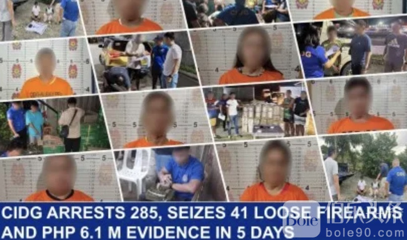 伯乐头条专讯:菲律宾警方近日展开三大代号联合行动——“帕格图吉斯”、“Omega”和“Oplan Olea”,在全国范围内取得显著成效。自9月1日至5日,警方共逮捕285名嫌犯,缴获价值610万菲律宾比索的证据和41支枪械,其中包括6支轻武器。