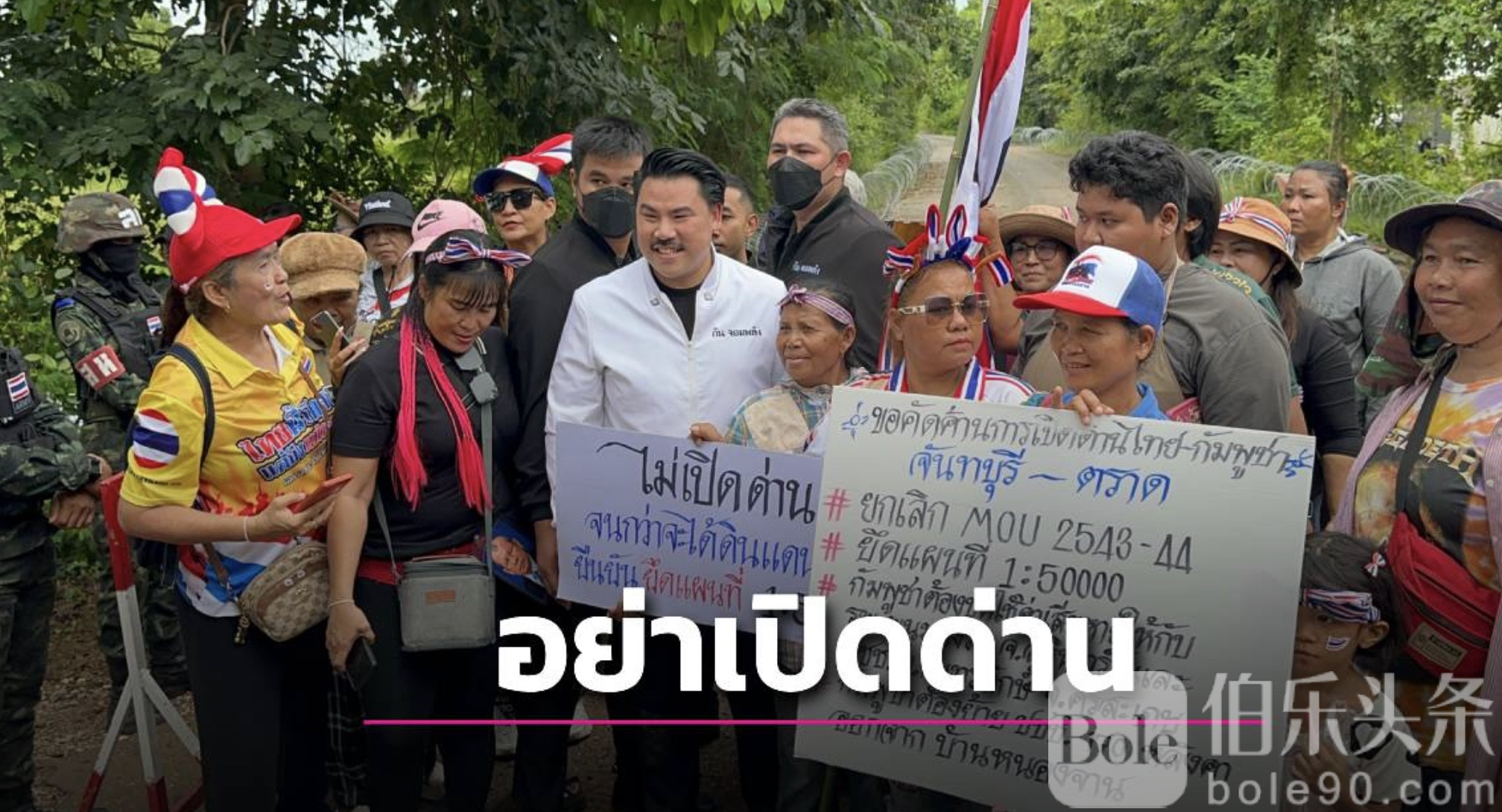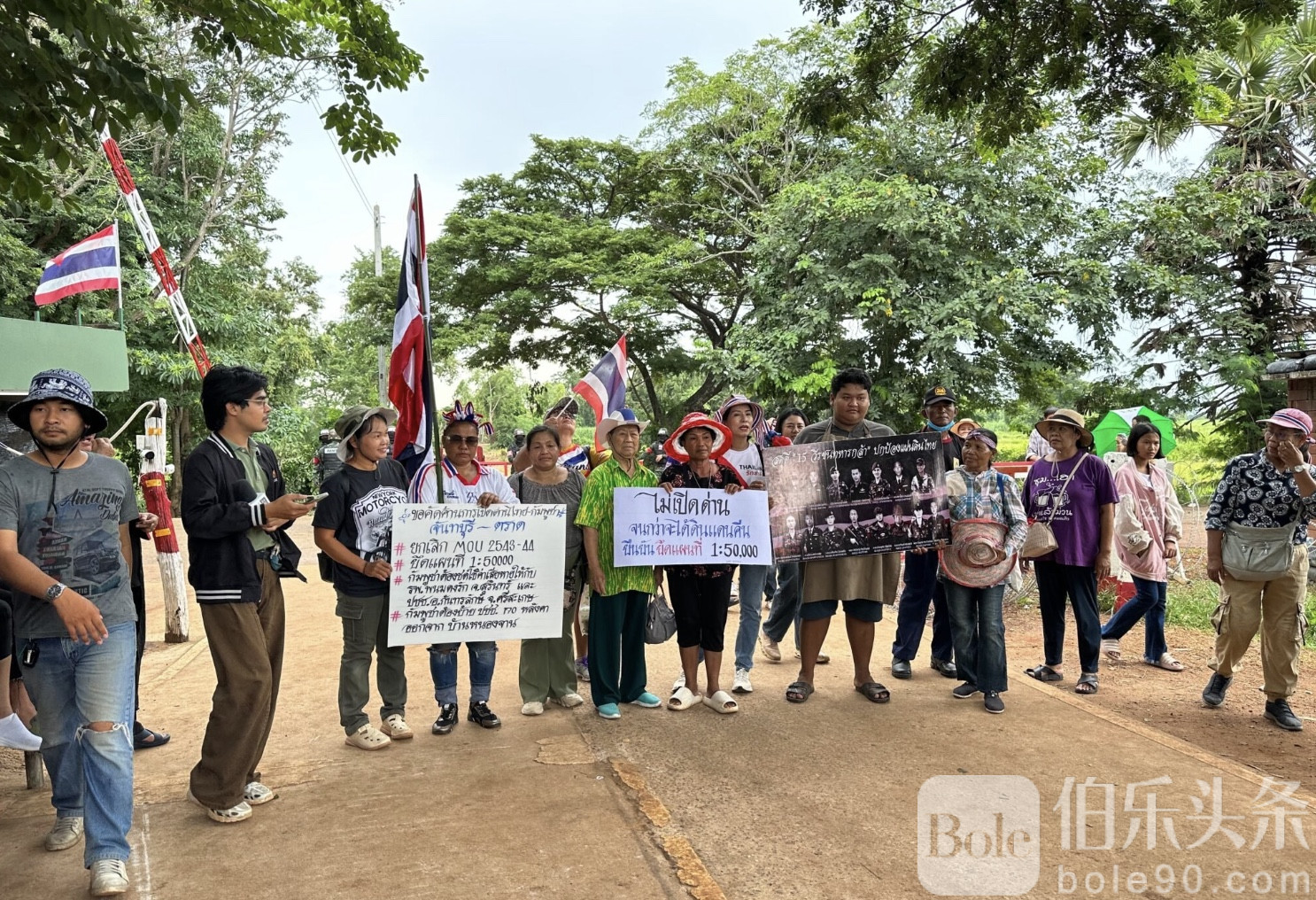 伯乐头条专讯:9月13日,泰国沙缴府(Sa Kaeo)科高县(Khok Sung)边境村庄气氛骤然紧张。上百名来自农赞村的民众聚集在第40检查点,举起醒目标语,坚决反对泰柬边境口岸重新开放,并要求政府在收回“失去的土地”之前,绝不开门。