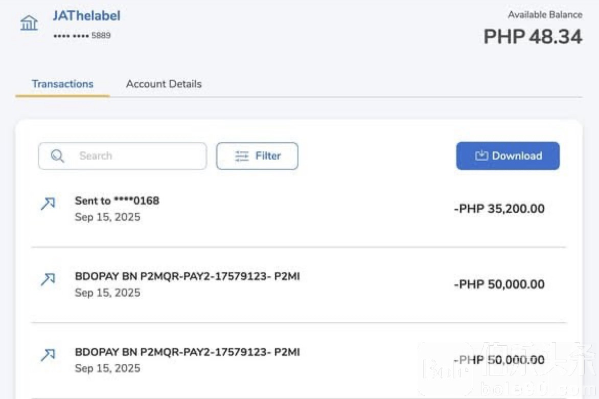 伯乐头条专讯:菲律宾一名BDO Unibank客户近日在社交媒体上爆料,其账户内189,000披索在短短几分钟内被盗走,整个过程中未收到一次性密码(OTP)或任何风险提示,引发外界对银行安全机制的质疑。