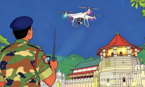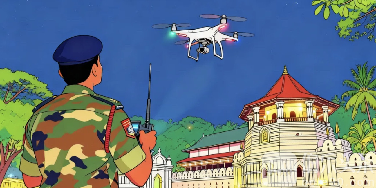 据斯里兰卡警方通报,该男子当晚7时许在佛牙寺护持官(Diyawadana Nilame)官邸附近操控无人机升空,直接飞越佛牙寺上空。佛牙寺作为斯里兰卡最重要的宗教圣地和文化遗产,周边长期处于高度安保状态。空军雷达发现后立即启用干扰设备,将无人机迫降,并将人机一并移交康提旅游警察局处理。