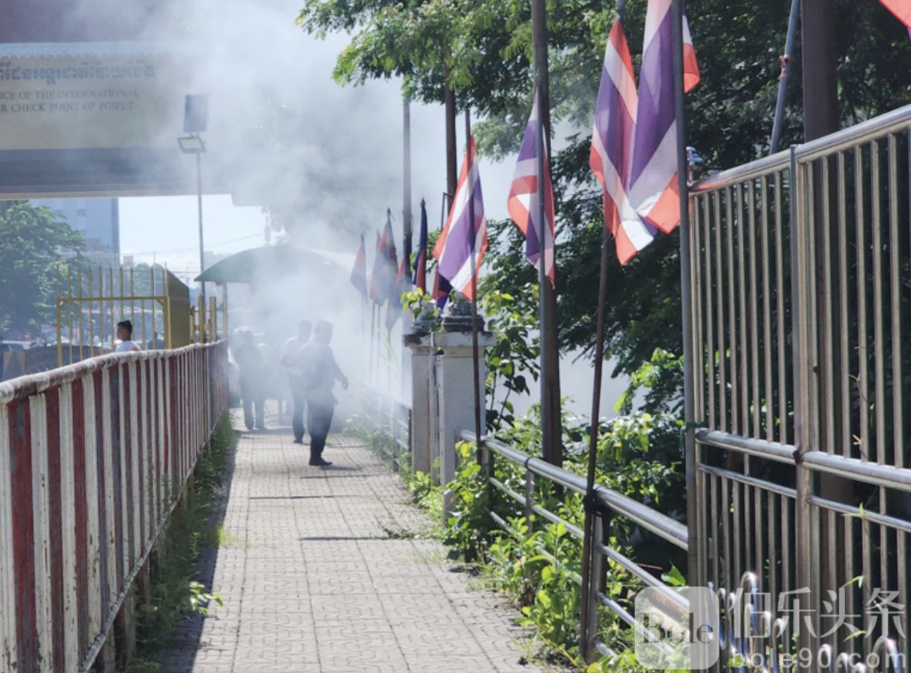 伯乐头条专讯:10月7日上午9时,位于泰国沙拉武府阿兰亚布雷(Aranyaprathet)对面、柬埔寨波贝市的泰–柬友谊桥下发生火灾。据现场目击,桥下冒出浓厚黑烟,并伴有明显塑料燃烧气味及飞散的废弃物,惊动了周边市场及边境民众。