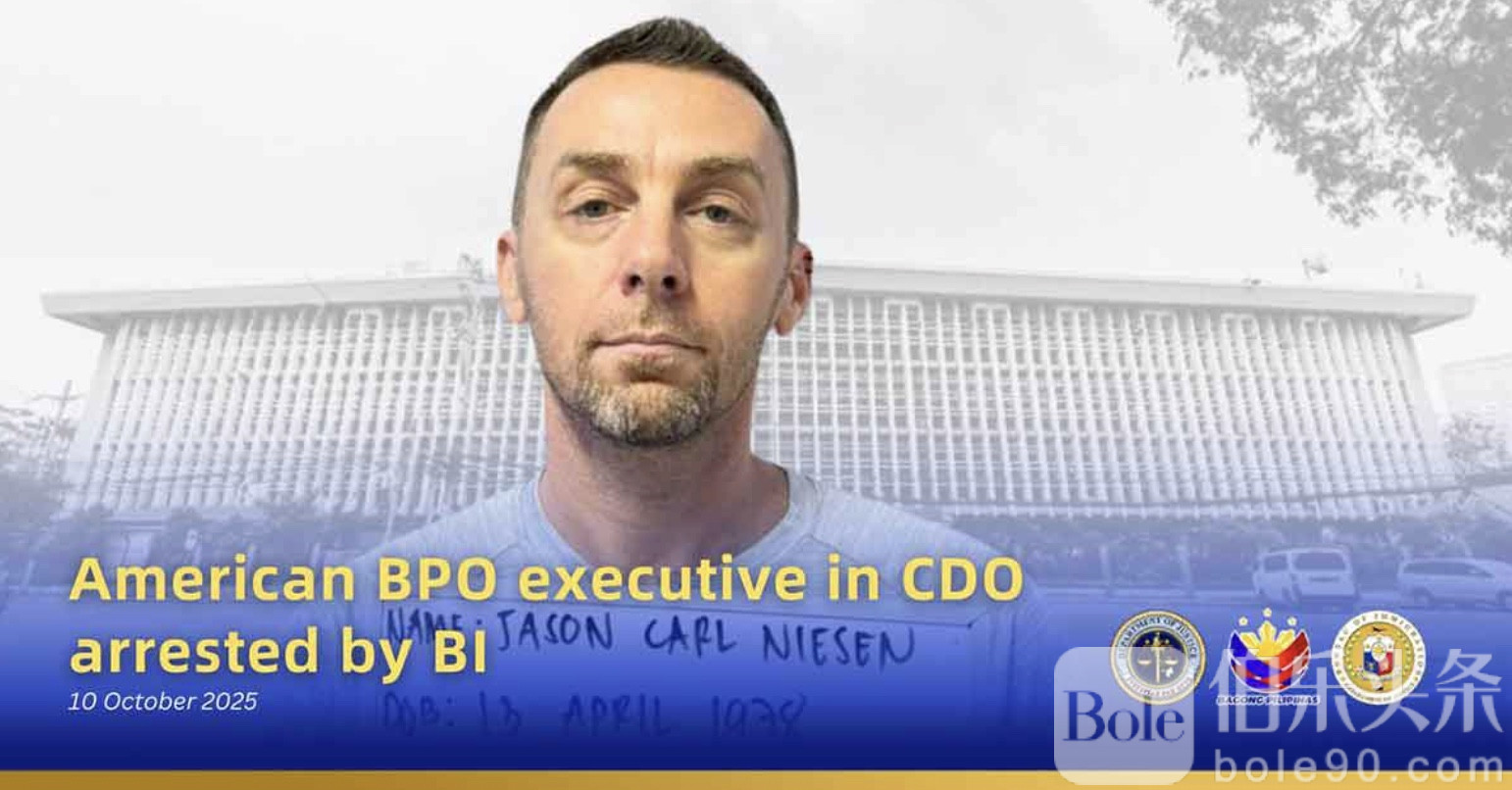 伯乐头条专讯:菲律宾移民局(BI)在宿务市展开行动,逮捕了一名美籍高管,该人士被发现非法担任当地一家业务流程外包(BPO)公司负责人,违反《菲律宾移民法》。