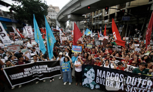 伯乐头条专讯:10月17日,来自马尼拉大都会多所大学和学院的学生在Mendiola桥集结,举行大规模走出校园的抗议活动,向政府腐败问题发出强烈声音。
