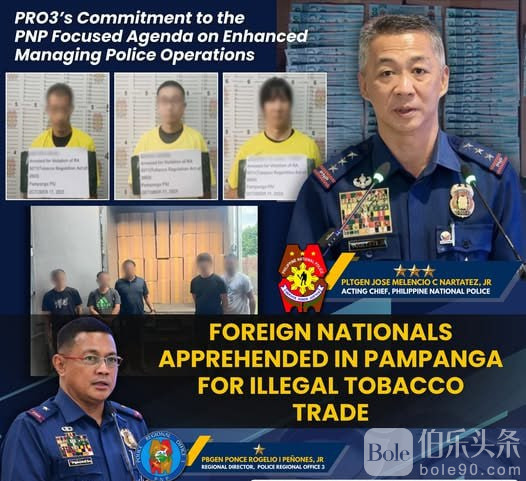 邦板牙警区总监庞塞·罗赫里奥·佩尼奥内斯准将指出,非法烟草走私不仅破坏合法市场秩序,也严重威胁公众健康。警方表示,将严格依照《2003年烟草管理法》(共和国法案第9211号)执法,并持续强化社区安全。三名中国籍嫌犯已被拘押,案件正按照法律程序进一步调查与起诉。