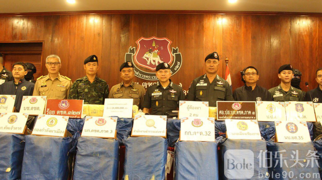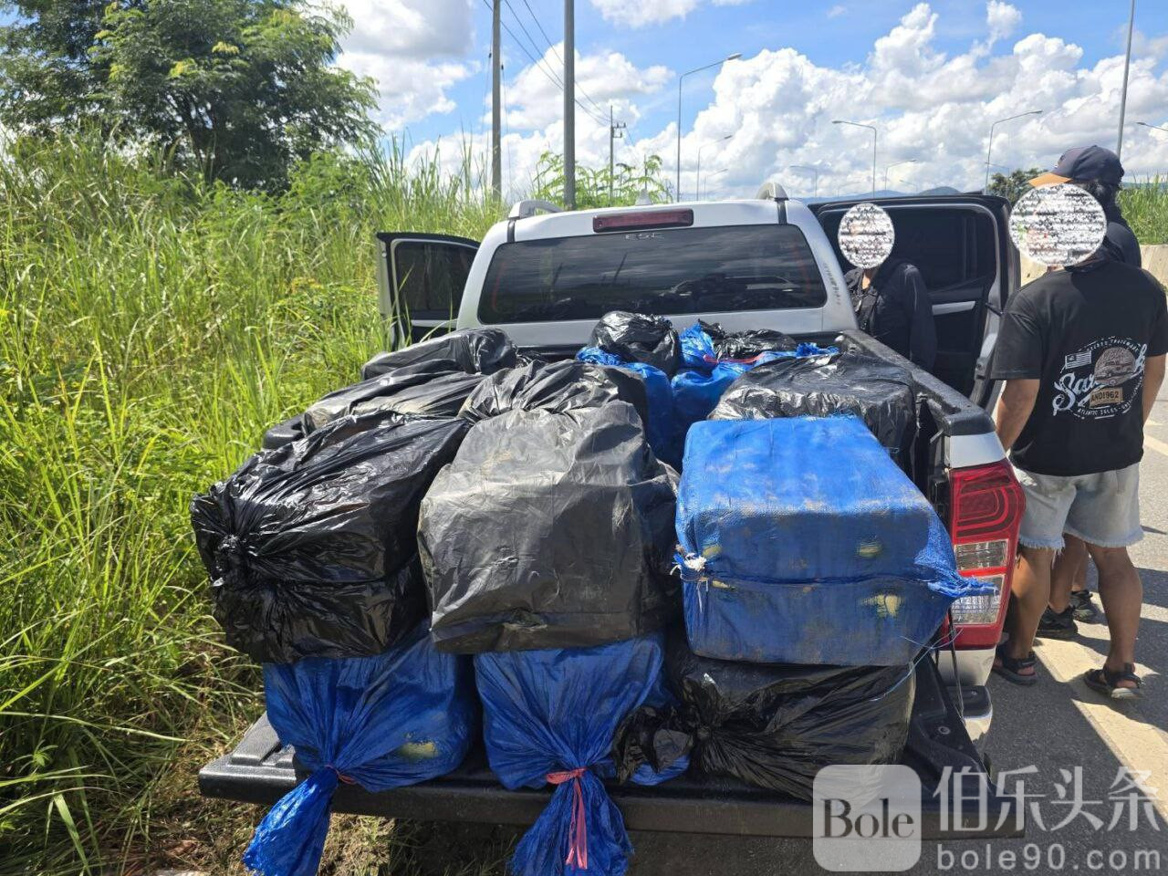 伯乐头条专讯:泰国清莱府湄占县警方于10月18日成功截获一辆涉嫌走私毒品车辆,逮捕两名清莱籍男子,并查获24袋甲基苯丙胺(冰毒),总计约440万粒。