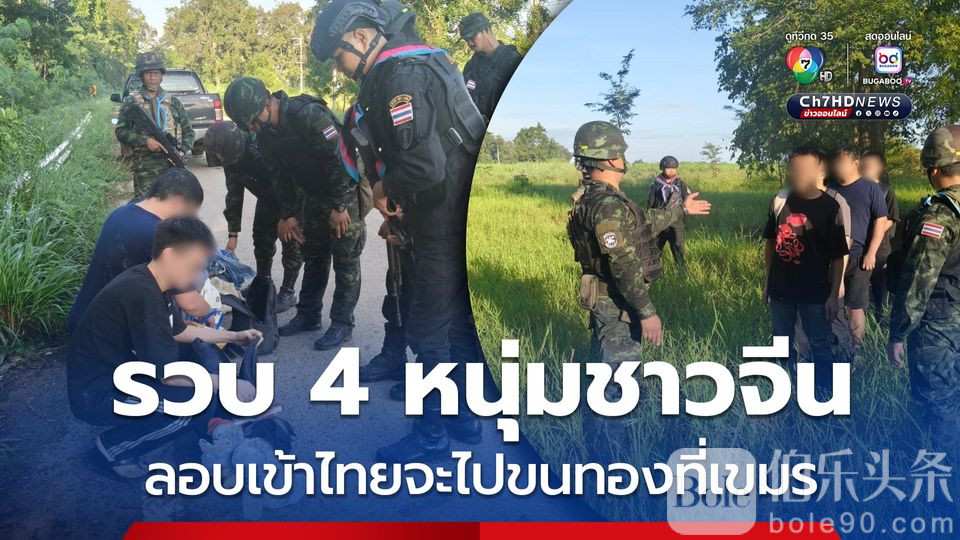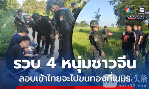 伯乐头条专讯:泰国萨凯奥府边境巡逻中,军方在Aranyaprathet地区抓获4名中国男子,他们非法入境,无法出示护照或入境许可。