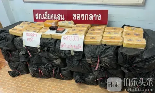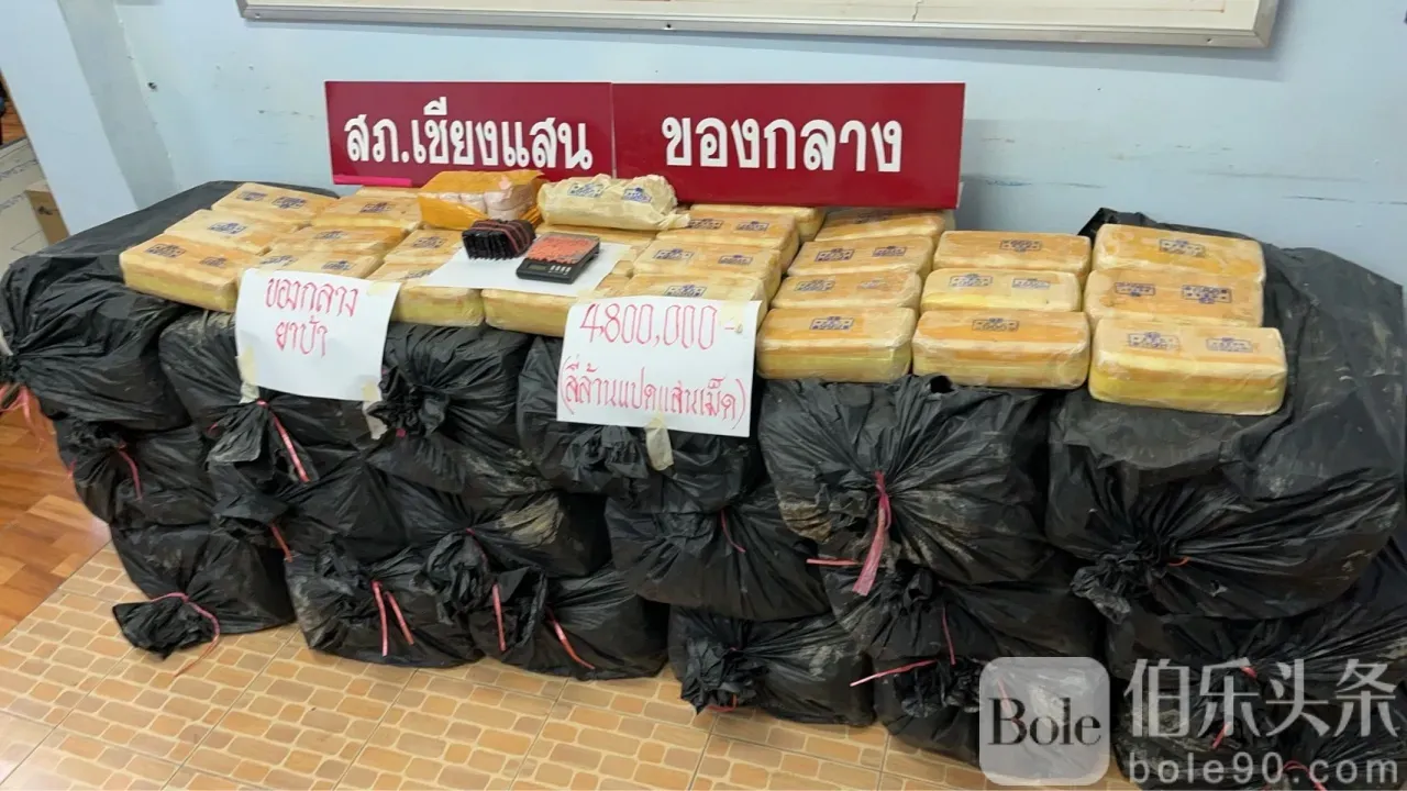 伯乐头条专讯:泰北清莱再破巨量毒品走私案!警方在清盛县边境路段设伏截获一辆可疑皮卡车,当场查获毒品“冰毒片”(Yaba)约480万粒,重达536公斤,估值数亿泰铢。司机见势不妙跳入湄公河逃逸,目前仍在追捕中。