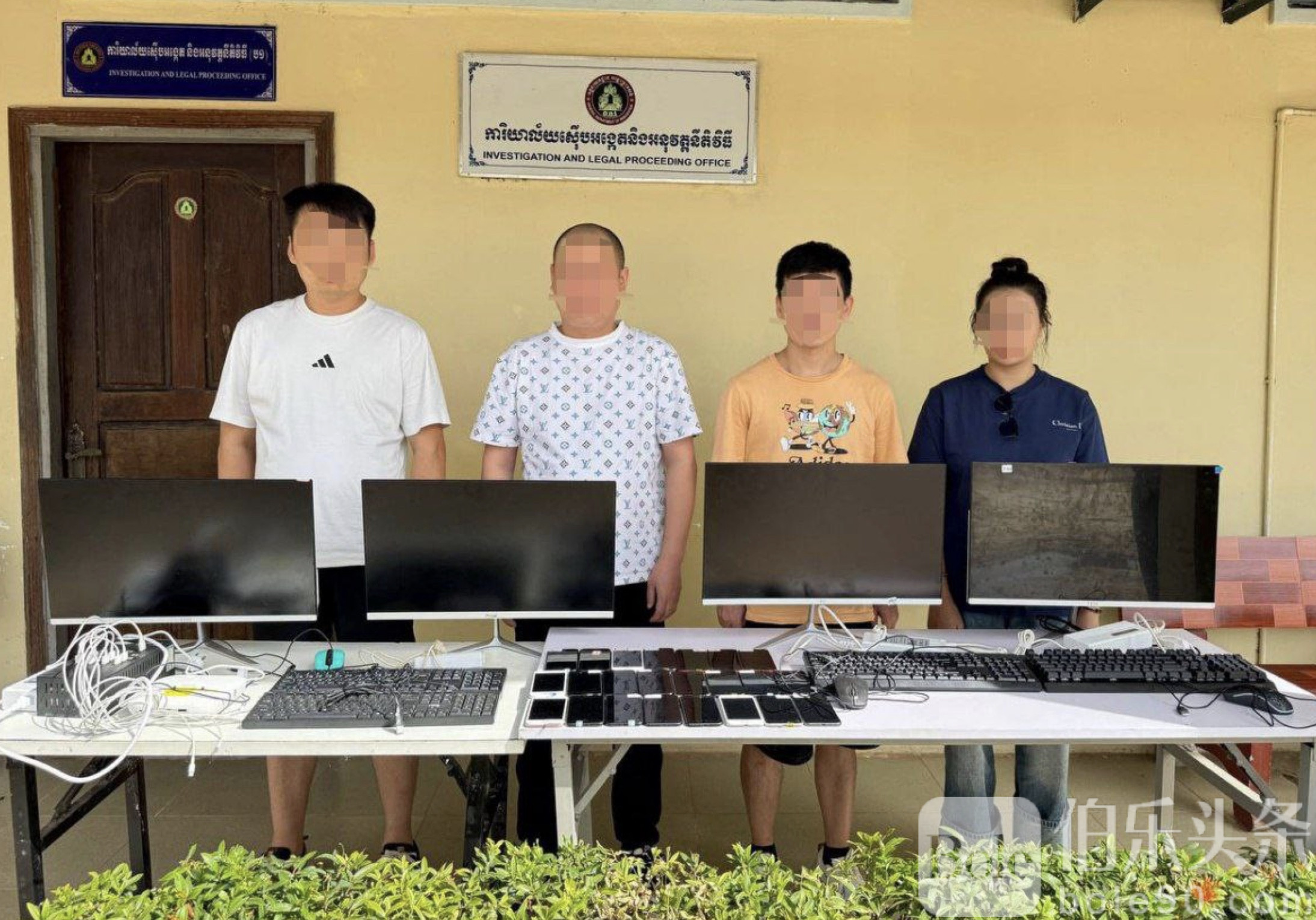 伯乐头条专讯:柬埔寨暹粒省警方近日在暹粒市斯韦当昆分区萨拉坎森村的一处租赁别墅内,成功抓获4名涉嫌非法活动的嫌疑人,其中包括3名中国男性和1名越南女性。被抓获的中国籍嫌疑人为小松、韩佳佳和秦次龙,越南籍女性嫌疑人为梁氏贵。
