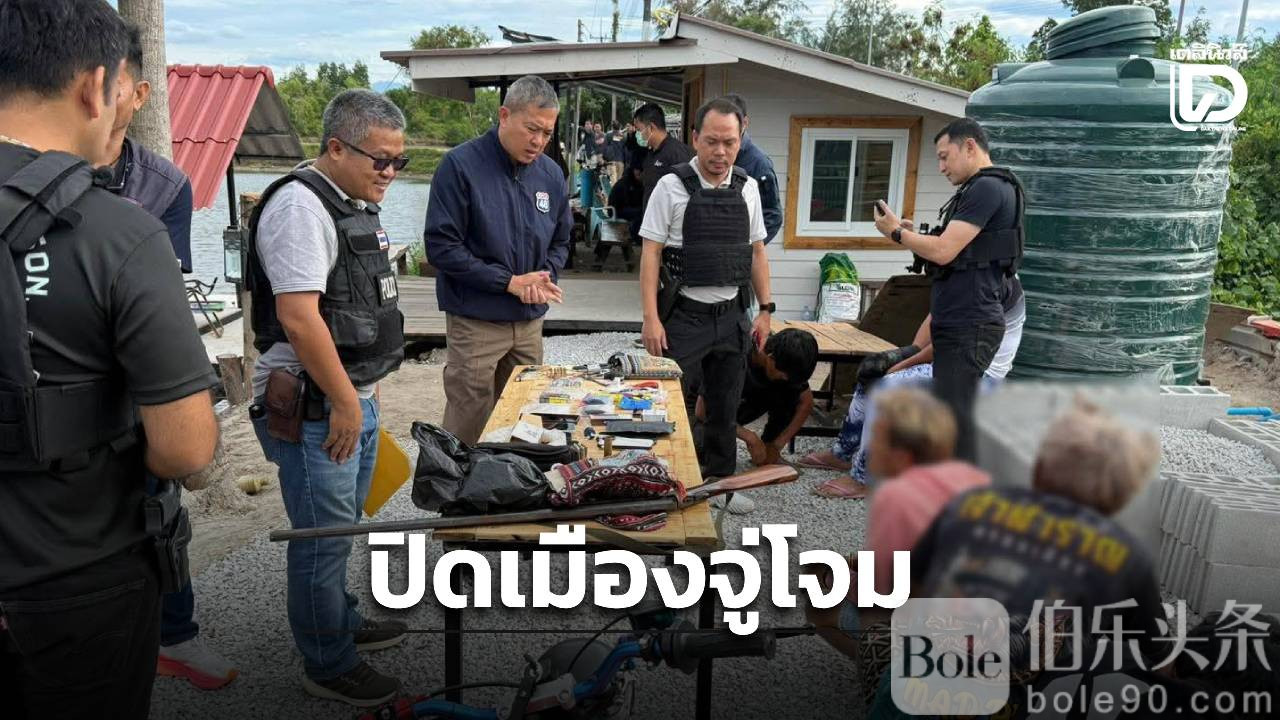 伯乐头条专讯:泰国警方“封城”突袭!29日,泰国罗勇府警方联合第二地区缉毒大队及地方执法部门,在罗勇府进行“三点收网”行动,成功抓获本地知名毒贩“单眼欧雷”(Ole Ta Diao,本名苏拉特·拉特邦),及其5名同伙,缴获大量毒品、枪械及可疑资产,总价值超过2000万泰铢。