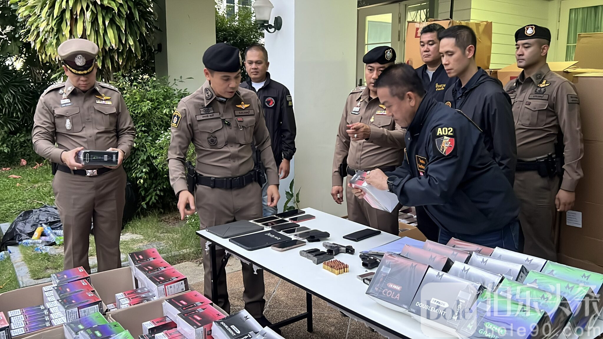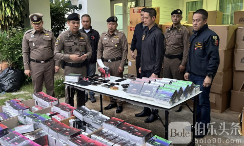 伯乐头条专讯:泰国暖武里警方重拳出击,成功捣毁一个大型电子烟仓库,现场查获超过 8 万件电子烟产品及多件枪械,总价值高达 2400 万泰铢!警方行动由暖武里府警察局局长德察披·空迪少将(Pol. Maj. Gen. Dechrapee Khongdee)亲自带队执行,震动全城。