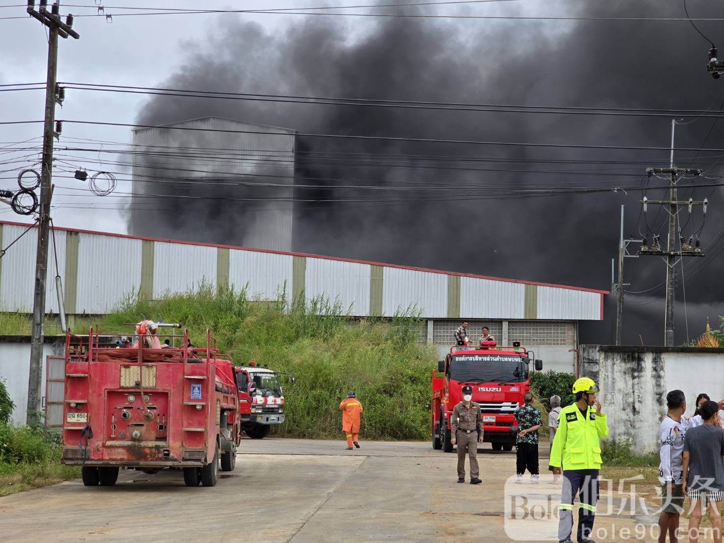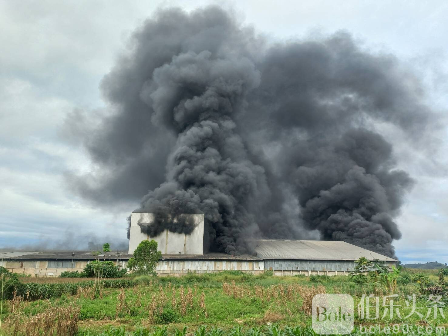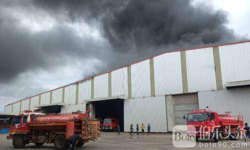 伯乐头条专讯:11月3日上午9时30分,泰国达府(Tak)湄索县(Mae Sot)发生一起严重火灾,一处储存玉米的烘干仓库与粮仓突发大火,滚滚黑烟冲天,覆盖整片社区,引发民众恐慌。消防部门紧急出动十余辆消防车,经过两个多小时的奋力扑救,火势才被控制。