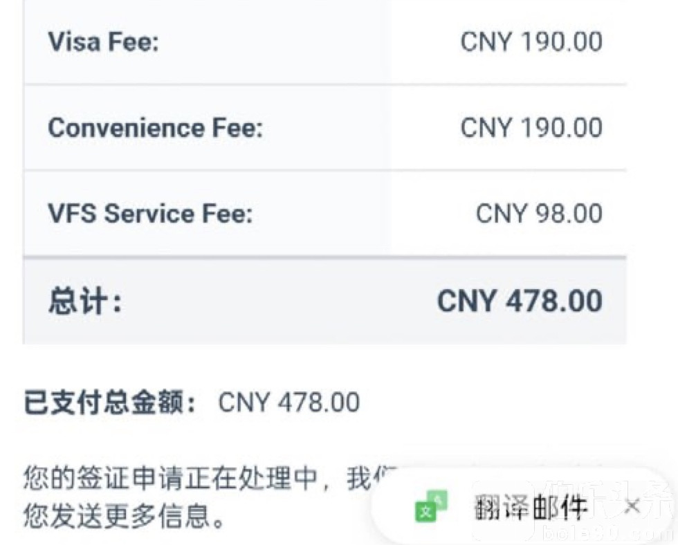 6️⃣ 费用说明:签证费190元、便利费190元、服务费98元,共计478元人民币。
