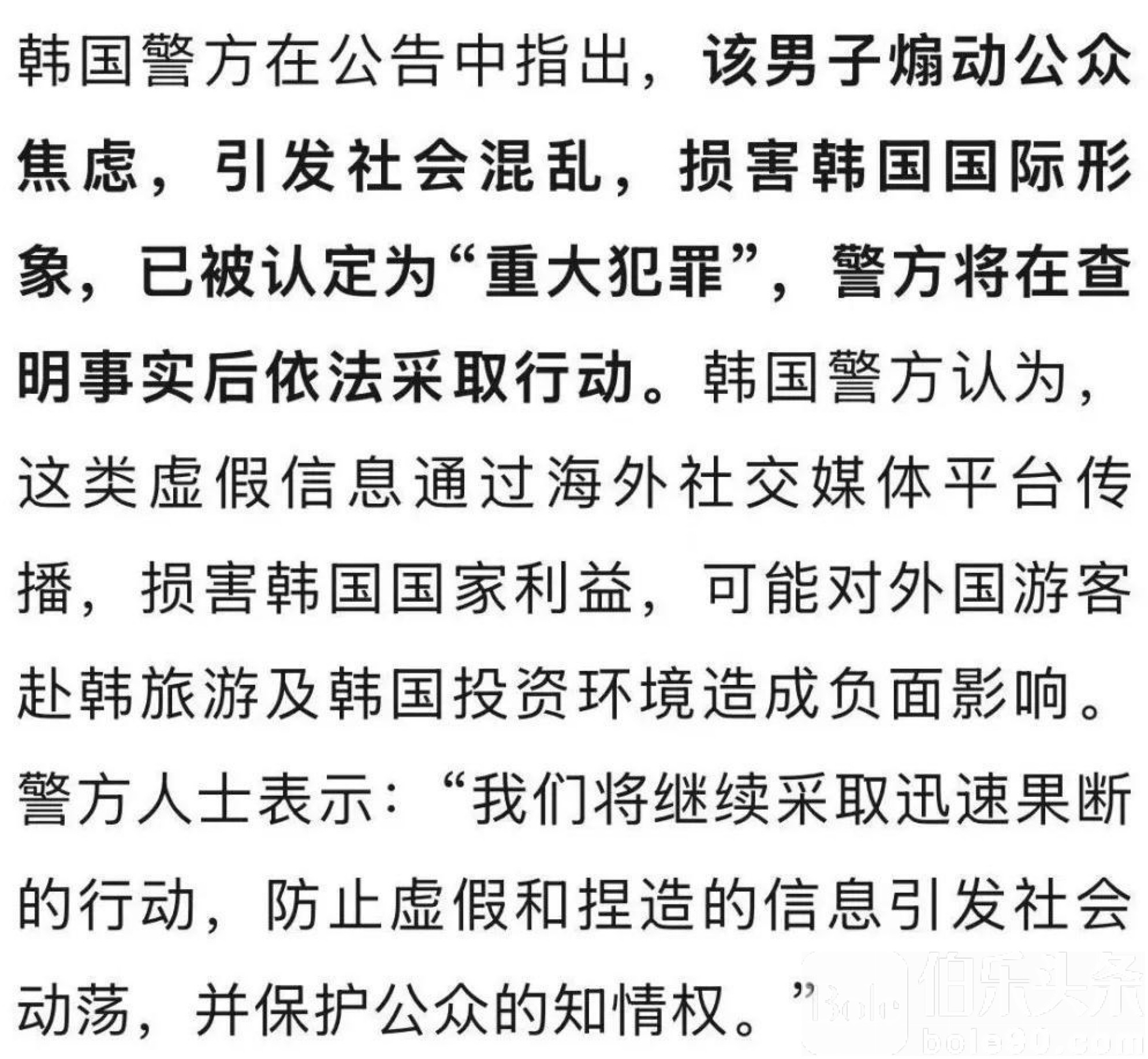 伯乐头条专讯:韩国警方近日对一名网络视频博主展开调查,该博主自称韩国人,在其社交媒体上发布内容,称“韩国发现37具半身尸体、另有150起案件正在秘密调查”,并诬称这些案件是免签入境的中国人所为。