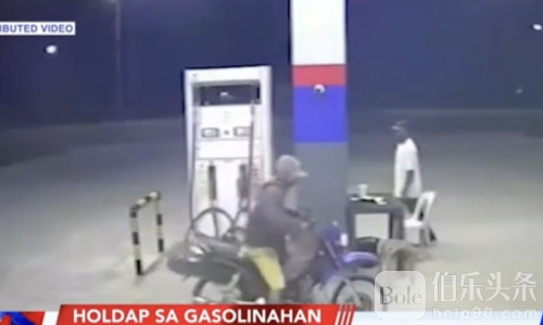 飞车持枪抢劫!菲律宾骑手加油站抢走近2千比索后逃逸