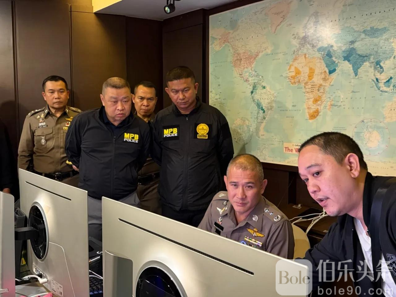今日中午1230分,泰国警察总署反网络犯罪局局长吉拉帕·普里德指挥特警小组实施突击,成功将4名嫌犯抓获,阻止其销毁关键电脑证据。现场查获电脑主机4台(仍在运行)、手机60部、冰毒2包,以及多项高端AI设备与存储资料。