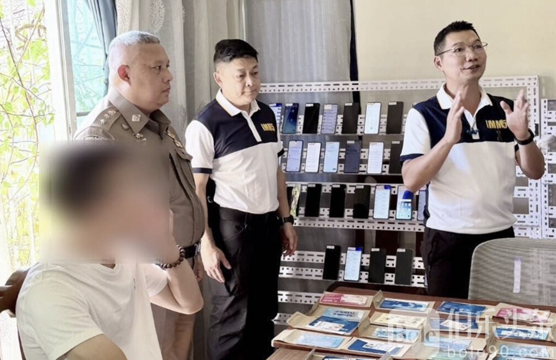 伯乐头条专讯:泰国警方11月11日突袭清迈一处民宅,当场逮捕一名涉嫌操控跨国电诈金流的中国男子,现场搜出海量作案工具,包括174部手机、73张银行卡、200多本银行存折与277份账户名单,疑为电诈集团的“洗钱中枢”,专门负责汇整赃款后转往境外总部。