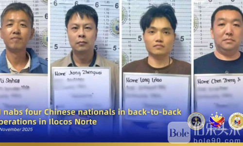 伯乐头条专讯:菲律宾移民局(BI)11月6日在伊洛科斯北布尔戈斯连续两次行动中逮捕四名中国籍人士,原因均涉及违反菲律宾移民法。此次行动由BI区域情报行动组(RIOU)主导,配合菲律宾海军、国家调查局劳阿格分局及布尔戈斯市警局展开。