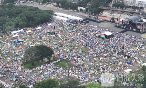 伯乐头条专讯:菲律宾马尼拉——宗教团体基督堂教会(Iglesia Ni Cristo, INC)在马尼拉基里诺大看台举行的三天反腐大集会进入第二天,截至11月17日早上10点,现场已有约18万人参与。部分成员选择在现场过夜搭帐篷,以继续观摩集会活动。