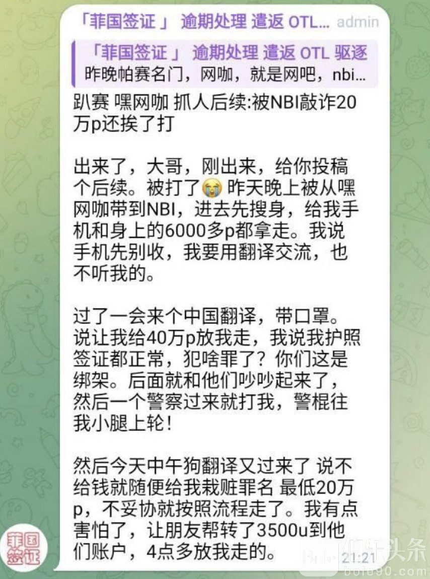 伯乐头条专讯:菲律宾趴赛“嘿网咖”突袭抓人事件再度升级,一名被带走的中国男子今日被释放后,向媒体爆料自己不仅遭到敲诈巨款,还被NBI人员殴打,过程惊险离谱,引发在菲华人群体强烈关注。