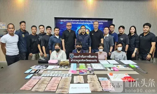 伯乐头条专讯:泰国孔敬府警方突袭一处被称为“马仔农场”的窝点,成功抓捕四名涉案嫌疑人,查获大批银行账户与提款卡,揭露其为电诈集团跑账、提取赃款的地下链条。泰国孔敬府警方根据政府及国家警察总署的反科技犯罪指令展开行动,孔敬府警察调查科与科技犯罪分析小组联合行动,突击抓捕37岁的苏拉蓬、其32岁的女友纳塔瓦恩,以及27岁的萨维特丽和32岁的素里亚。