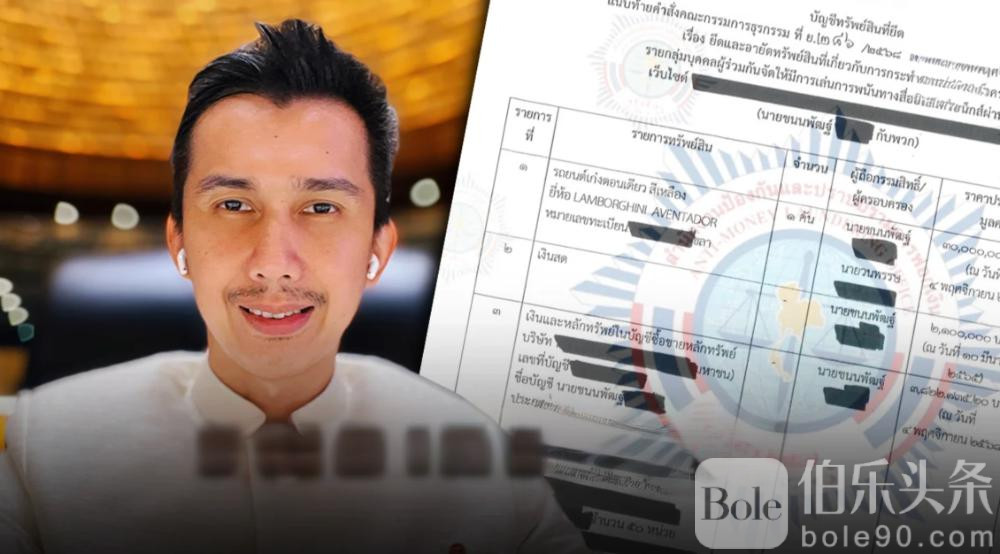 伯乐头条专讯:泰国反洗钱办公室(AMLO)日前依据调查所得金流证据,宣布临时冻结国会议员陈农帕他(Chonnaphat)及其家族合计 69 项、总值约 1.59 亿泰铢的资产,包括名贵跑车、银行账户、证券资产及大面积土地,引发政坛广泛关注。