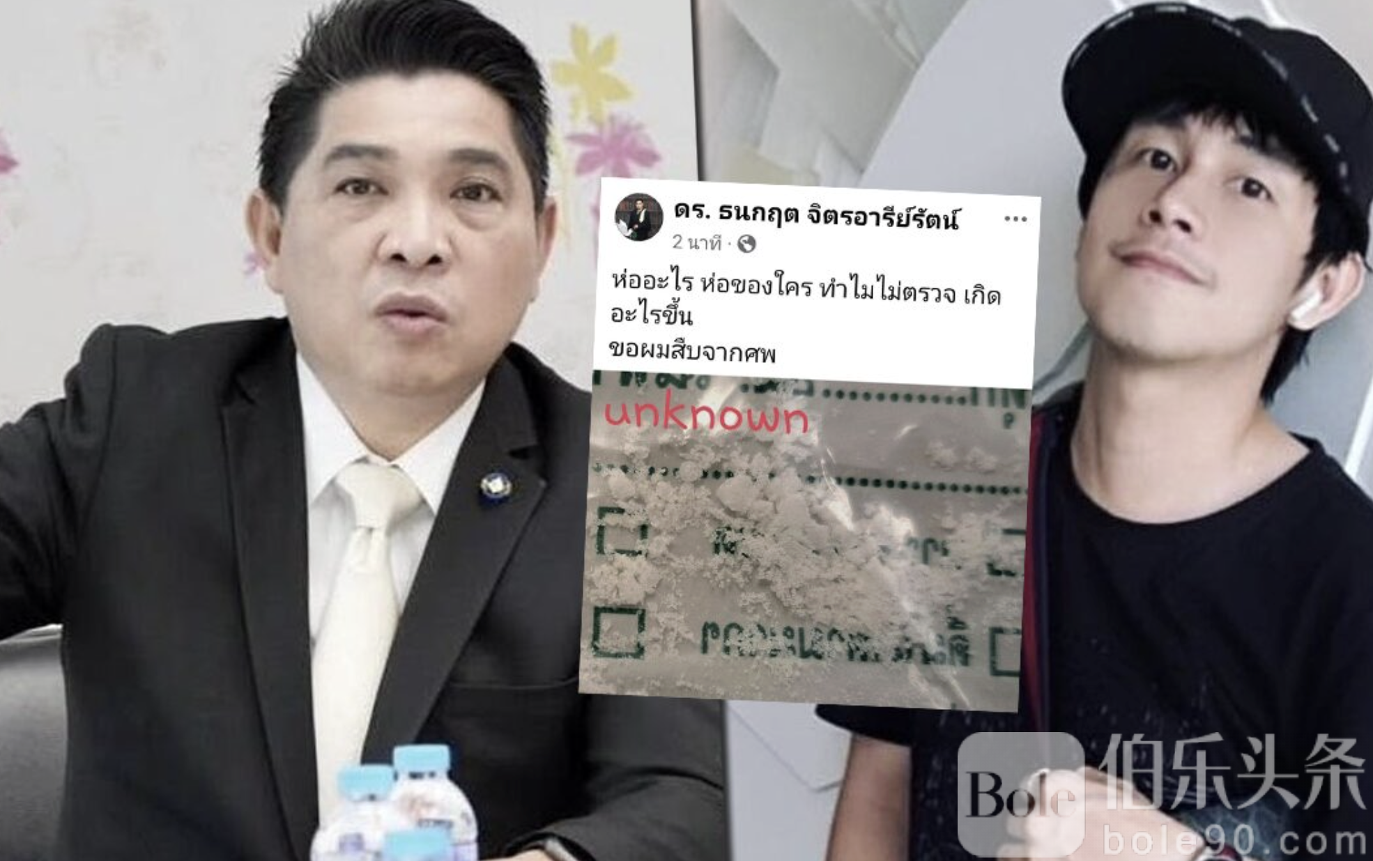 社交媒体上最先引发关注的,是社发部秘书方 坦纳叻博士(Dr. Thanakrit Chitaraiyarat)在其专页上传的照片——一个装着白色粉末的小袋。他配文质问:“这是什么?是谁的?为何没人检测?我要从遗体继续查下去。”这段话瞬间引爆舆论,让原本以为“自然死亡”的案件再度浮出大量疑点。