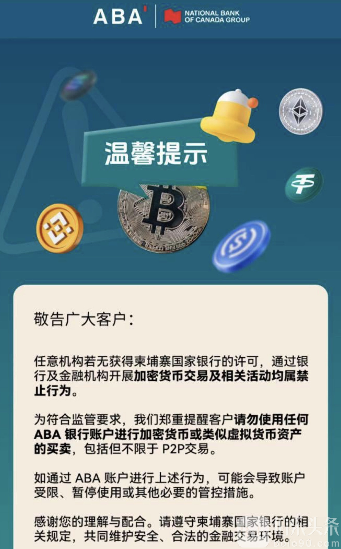 伯乐头条专讯:柬埔寨 ABA 银行今日中午发布重磅提醒,直指近期不断增加的风险操作——禁止所有用户利用 ABA 账户参与任何形式的加密货币交易。随着汇旺(Wing Bank)大规模挤兑、门店关停,不少受影响用户扎堆前往 ABA 开户,也让银行不得不迅速亮明态度:加密货币在柬埔寨仍属“绝对禁区”。