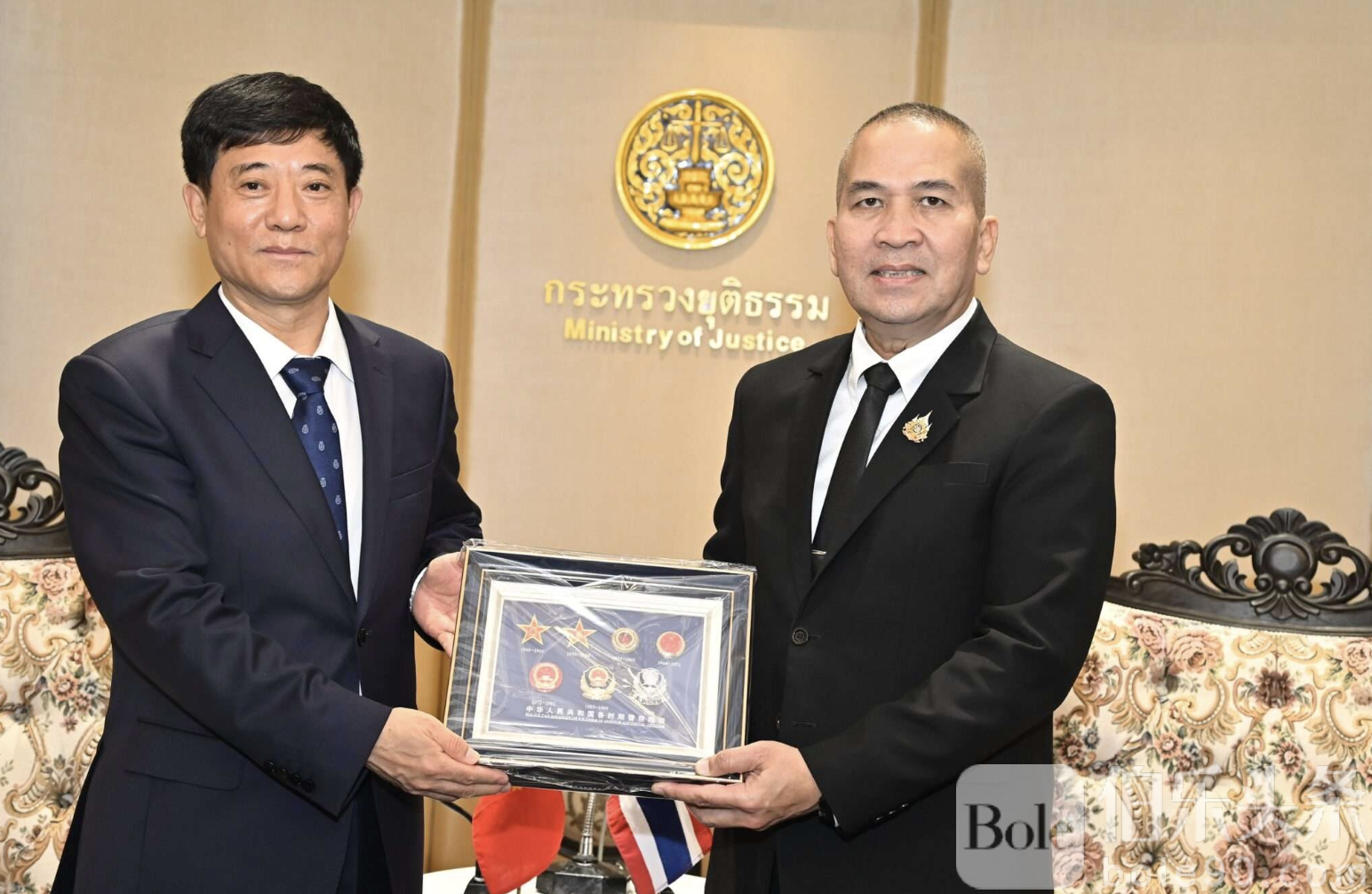 伯乐头条专讯:12月16日,中泰双方在泰国司法部举行高层会谈,泰国司法部长鲁特蓬·瑙瓦拉特亲自接待中国公共安全部助理部长刘忠义及其代表团,双方就跨国电信诈骗、毒品犯罪及科技犯罪的打击行动展开深入磋商。这次会谈适逢中泰建交50周年,并在此前泰王及王后访问中国后进一步体现两国关系紧密。