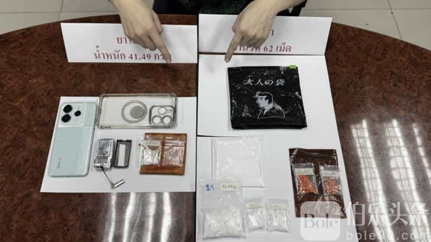 伯乐头条专讯:泰国警方于12月24日晚在曼谷成功破获一起“送毒上门”的荒唐案件,一名女子携带冰毒与疯药前往警局探望被羁押丈夫,因行为异常、毒味外泄,被执勤警员当场识破并拘捕,相关毒品在警局拘留区前被全部查获。