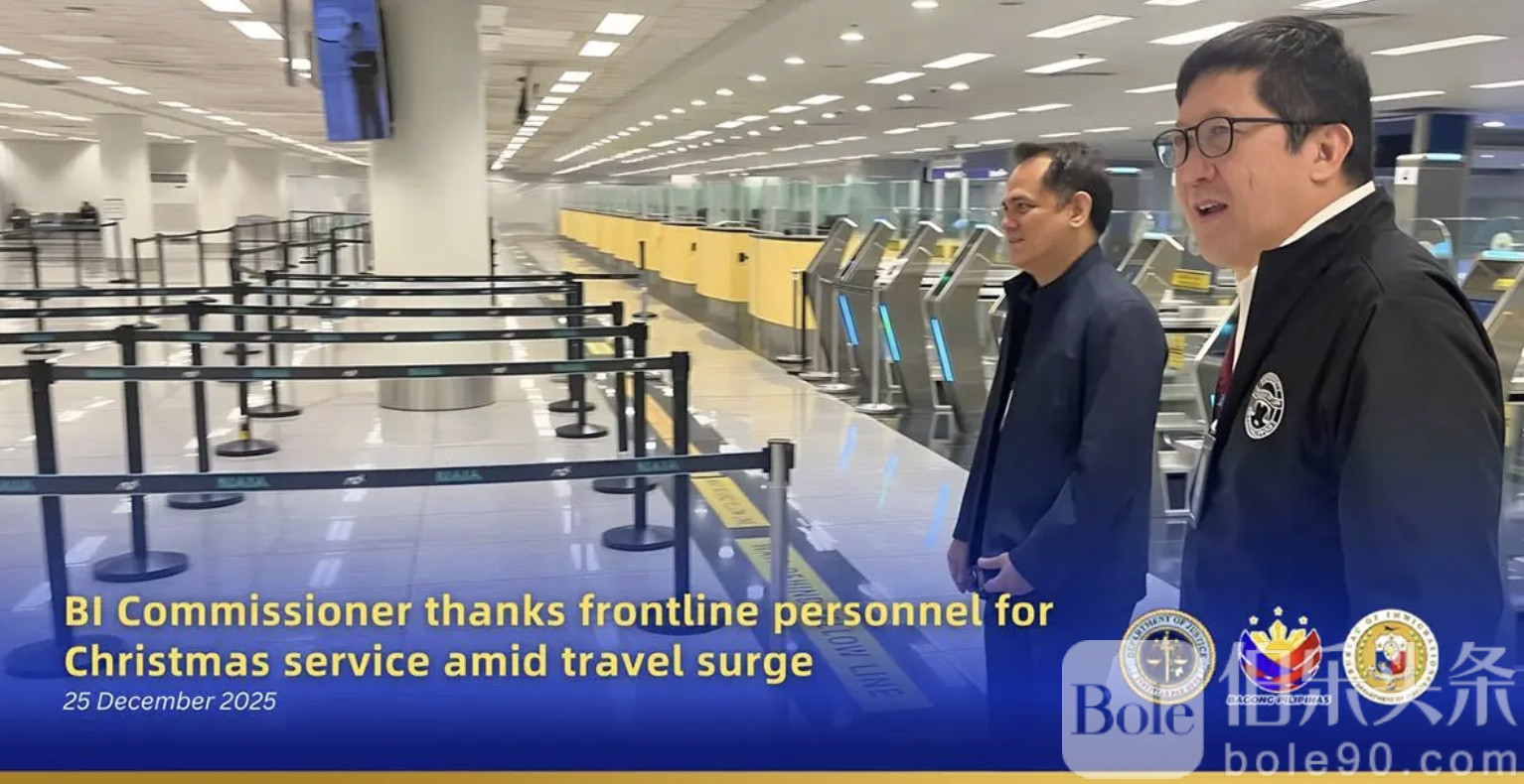 伯乐头条专讯:在万家团圆的圣诞时节,菲律宾各大机场与港口依旧灯火通明。菲律宾移民局(BI)局长乔尔·安东尼·维亚多(Joel Anthony Viado)于近日公开向坚守岗位的一线移民官员与工作人员致谢,感谢他们在旅客激增、假期高峰之际,选择把岗位当作“第二个家”,为公众出行保驾护航。