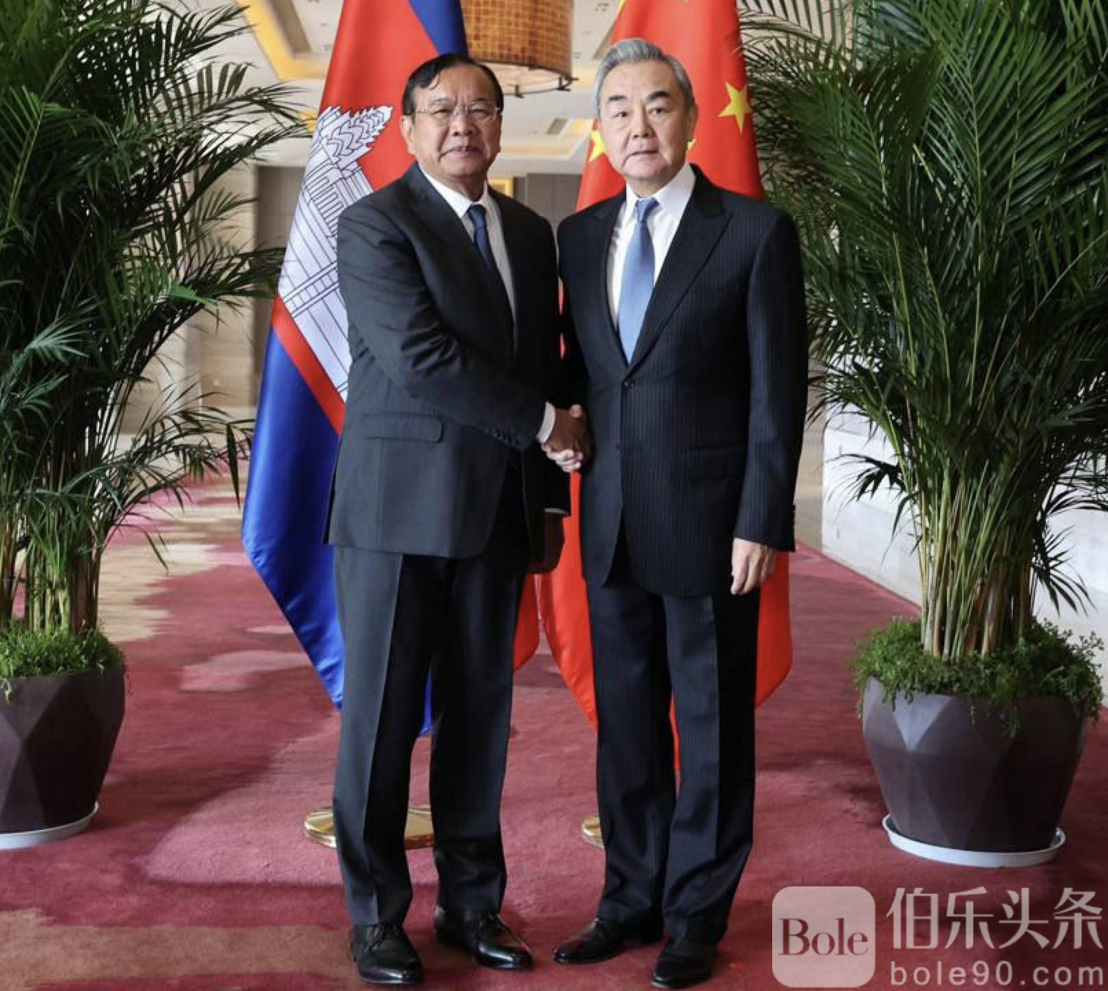 伯乐头条专讯:柬埔寨副总理布拉索昆今日在云南省与中国外交部长王毅举行双边会谈,双方就深化柬中合作、巩固战略伙伴关系进行了深入交流,旨在推动地区与全球的和平、安全、稳定及可持续发展。