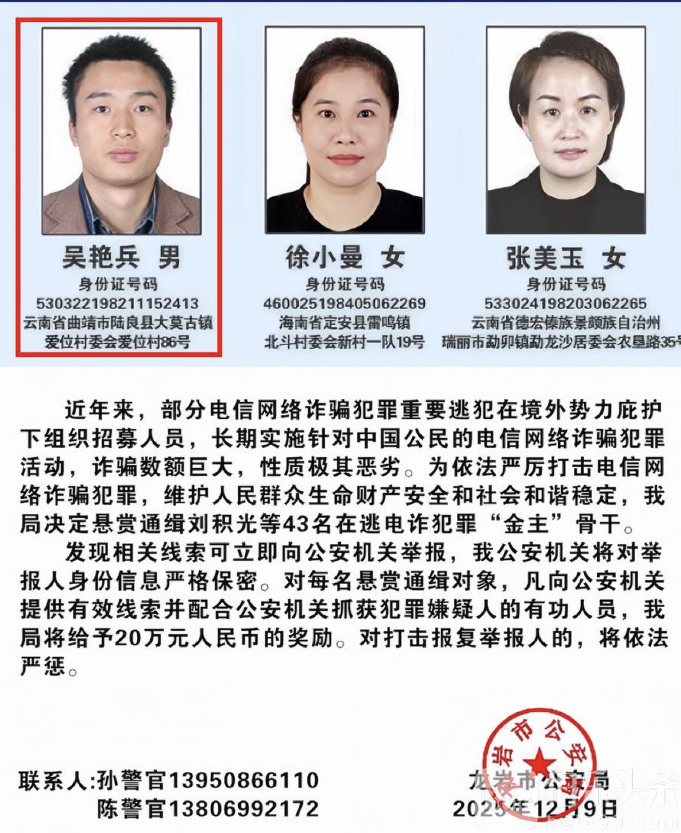 伯乐头条专讯:近日,中国公安部正式发布通缉令,对100名电信网络诈骗在逃金主及骨干成员展开集中追捕行动,其中与缅北“四大家族”犯罪集团关系密切的吴艳兵,被列为重点目标,其在柬埔寨境内活动的跨国电诈网络随之浮出水面,引发东南亚舆论高度关注。