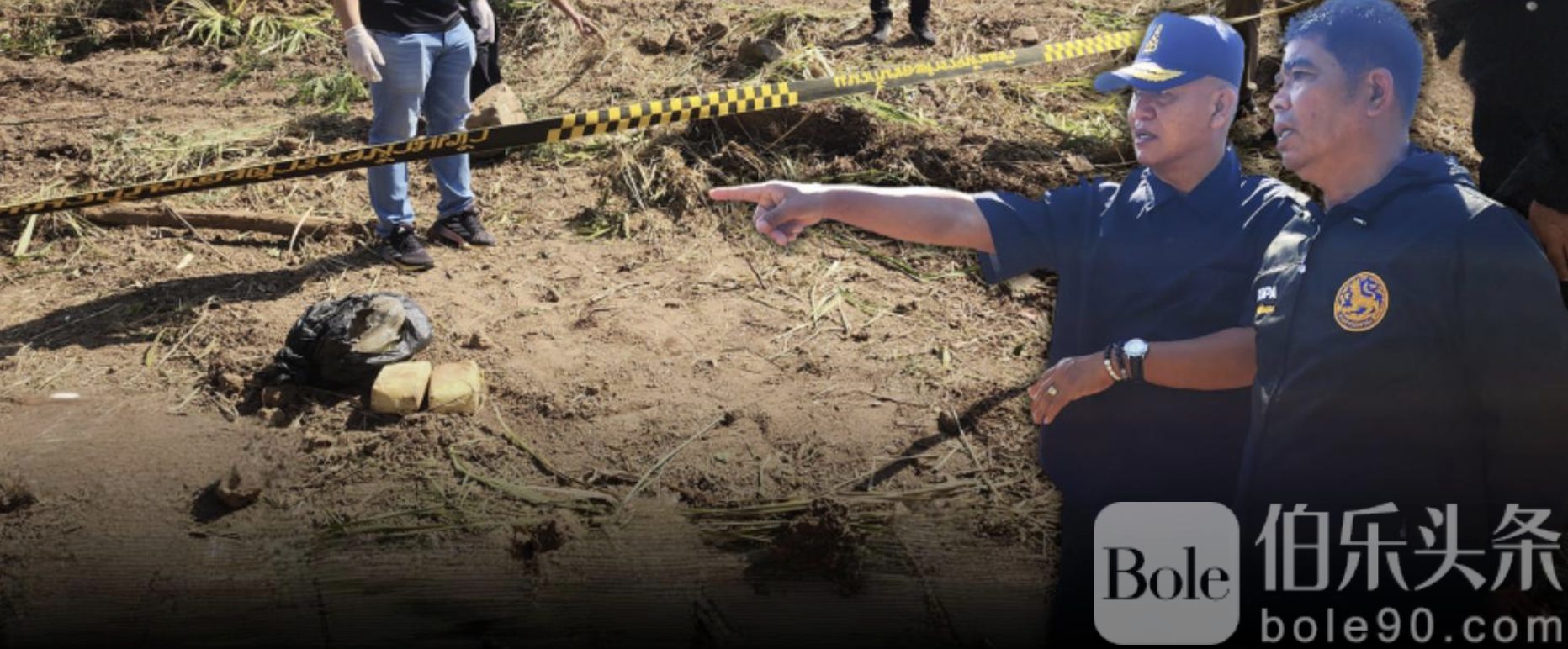 伯乐头条专讯:1月6日,泰国碧差汶府(Phichit)发生一起颇具戏剧性的毒品发现事件。当地一台背挖机在清理杂草时,意外挖出两大包黑色塑料袋,里面装有疑似冰毒约20,000颗。
