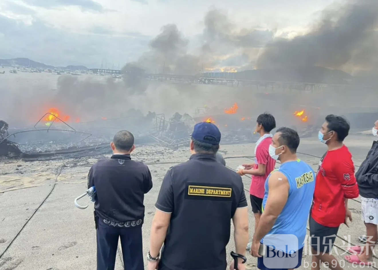 伯乐头条专讯:1月7日凌晨约4时,泰国普吉府查龙警察局接到报警,称位于治县查龙镇的查龙码头突发快艇火灾。警方随即联同消防及救援人员火速赶赴现场处置,现场一度火光冲天,浓烟弥漫整个码头水域。