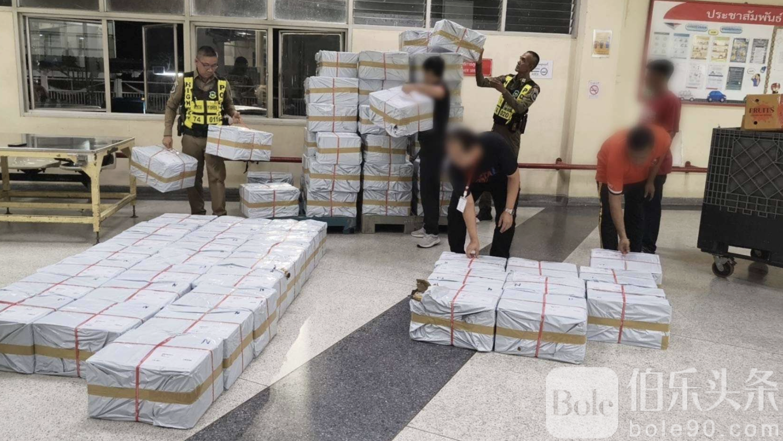 伯乐头条专讯:泰国中央调查警察局在南部高速公路成功截获一起重大走私香烟案件,当场查扣走私香烟超过40万支,涉及货车82箱,原计划分发至整个泰国南部地区。警方正在全力追查背后操控团伙。