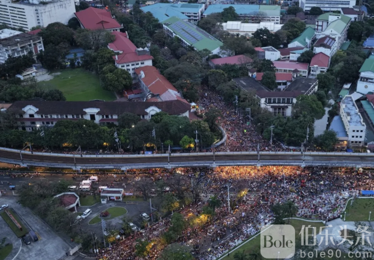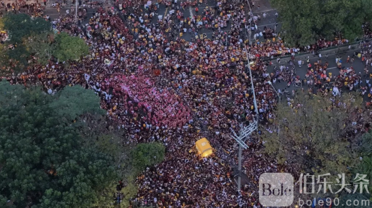 伯乐头条专讯:1月9日,菲律宾首都马尼拉迎来一年一度的“黑耶稣节”(Feast of Jesus Nazareno),重头戏——圣像迎奉游行(Traslacion)清晨正式启动。随着人潮不断汇聚,城市多条主干道被信众填满,现场气氛庄严而炽热,也在一定程度上考验着城市的承载能力。