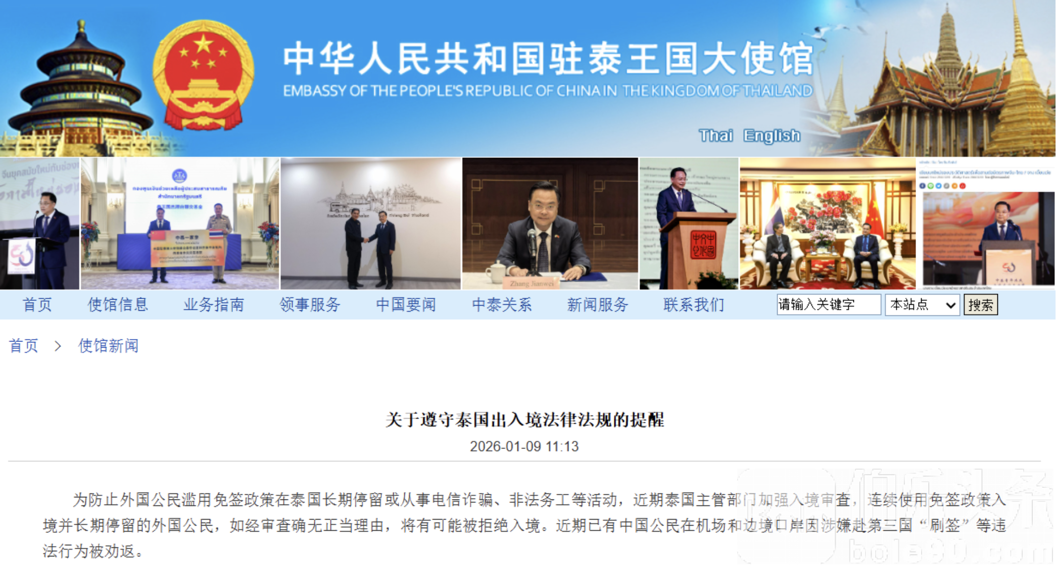 中国驻泰国大使馆1月9日提醒所有计划前往泰国的中国公民,一定要严格遵守泰国的出入境法律法规。根据你真实的访问目的去申请相应类型的签证,千万不要从事与签证类型或入境目的不符的活动。出发前,记得提前准备好在泰国的行程安排、往返机票、酒店预订凭证等,以备检查,避免出入境受阻。要经过柬埔寨进入泰国,最好选择乘坐飞机。遇到紧急情况,请及时报警,并向中国驻泰国使领馆寻求帮助。