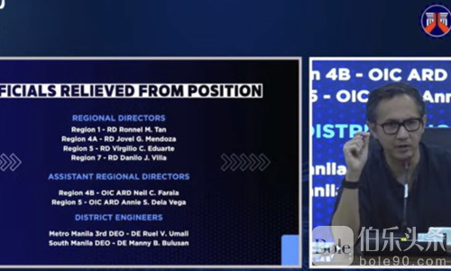 伯乐头条专讯:菲律宾公共工程与公路部(DPWH)内部整顿动作持续加码。1月12日,工程部长文斯·迪宗(Vince Dizon)在记者会上宣布,因涉及多项正在进行的调查,已有8名区域及地方高级官员被解除职务,其中包括4名区域主任,相关人事调整即日生效。